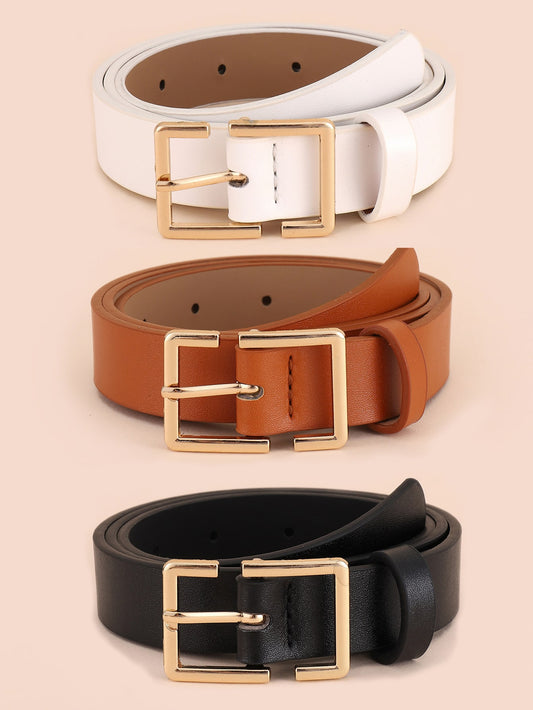 (3pcs/Set) S-Shaped Buckle Women's Waist Belt, Fashionable And Versatile Decorative Leather Belt