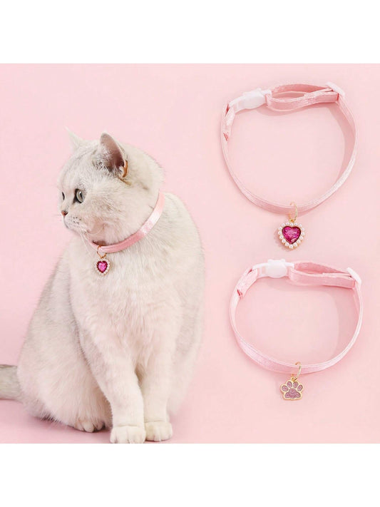 1 Adjustable Pearl Heart Cat Necklace Collar, Suitable For Small And Medium-Sized Pets
