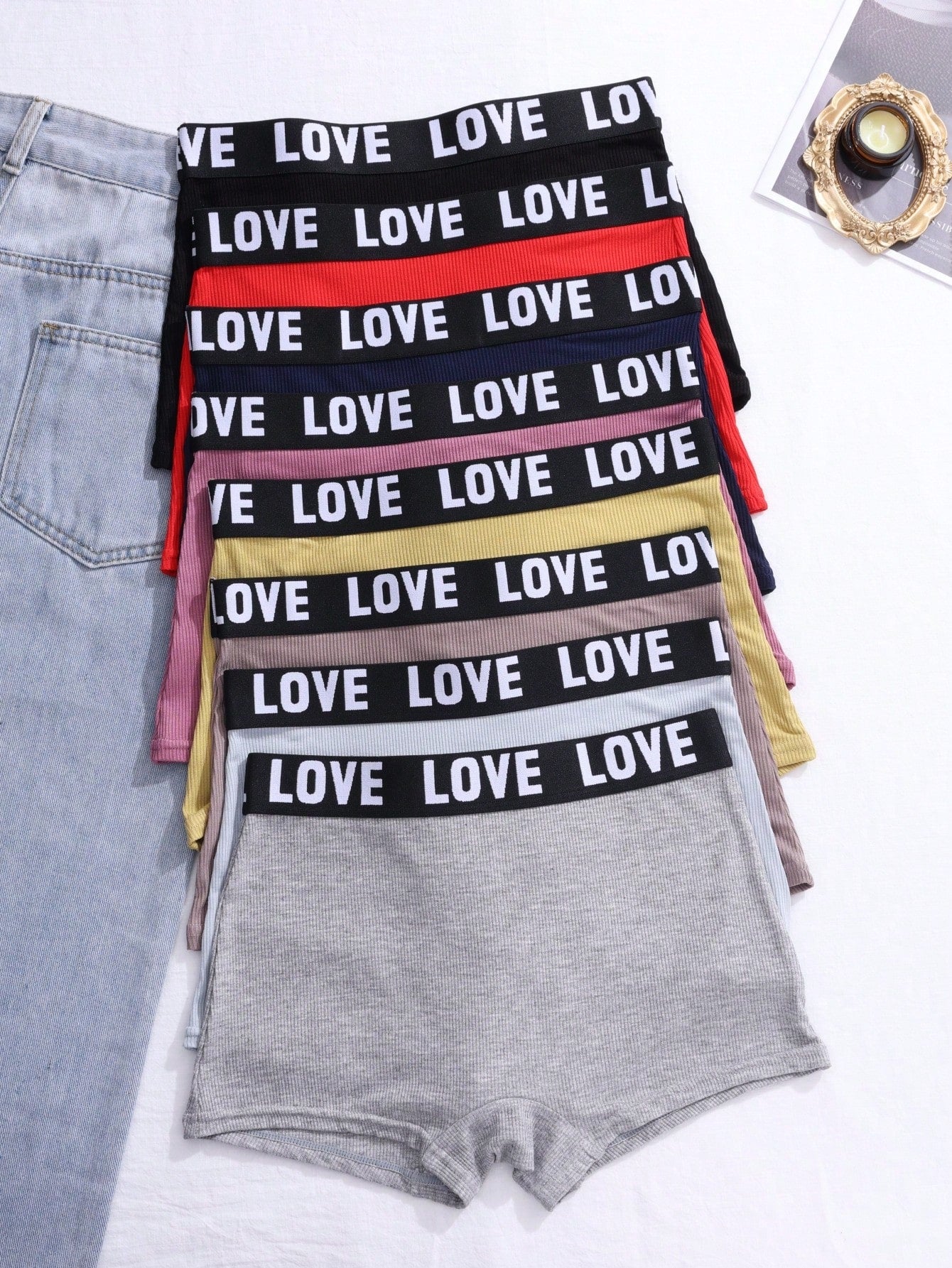8pcs Women's Letter Printed Waistband Square Cut Underwear, Sports & Casual Shorts Set