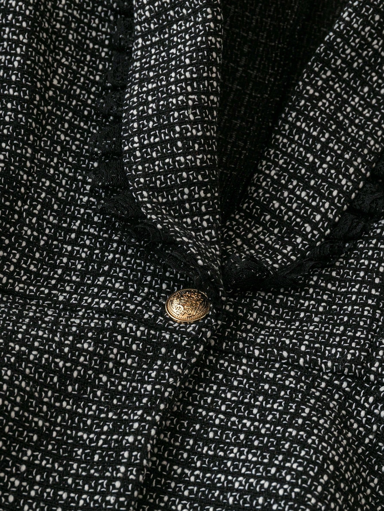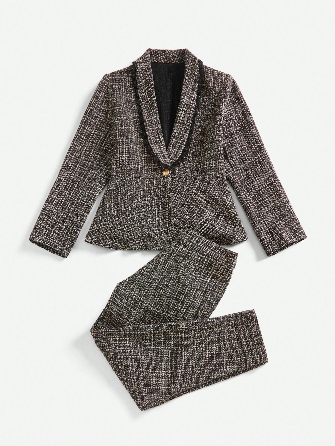 Clasi 2pcs Lace Patchwork Shawl Neck Button Front Long Sleeve Slim Fit Blazer Jacket & Pants Suit Set