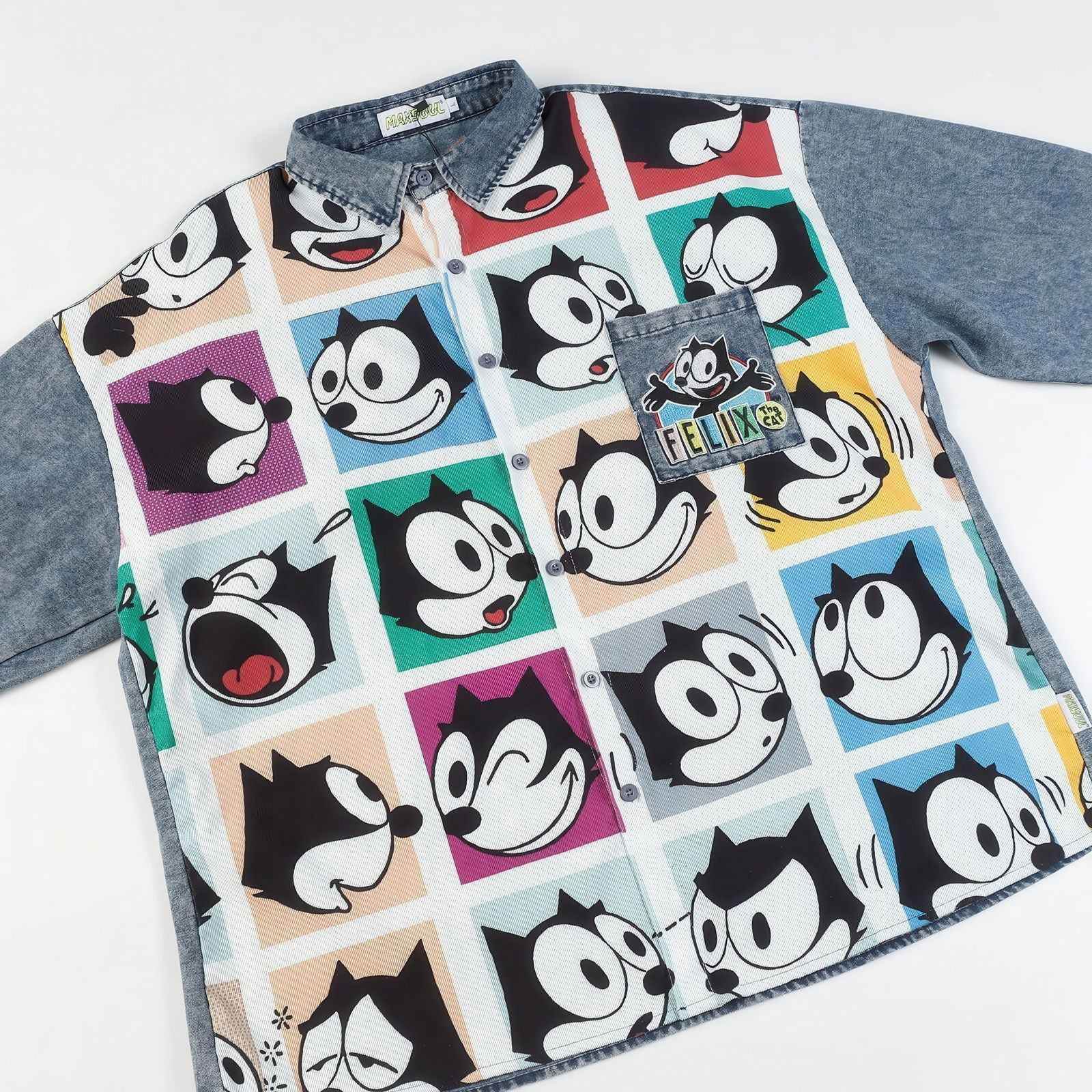 This oversized shirt blends corduroy and denim with playful cartoon patches for a fun, street-style vibe. Its relaxed fit makes it perfect for both men and women, offering comfort and individuality in one unique piece. A must-have for casual, fashion-forward outfits.