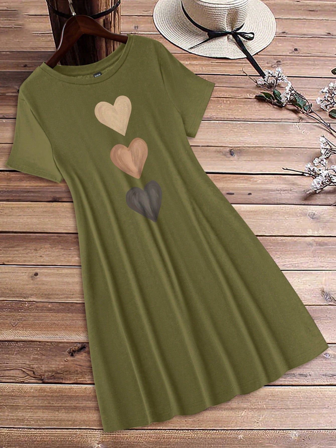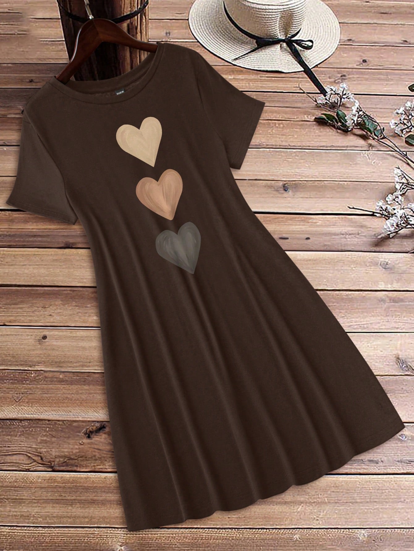 EMERY ROSE Women's Casual Love Print Round Neck Short Sleeve Bodycon Mini Dress, Summer