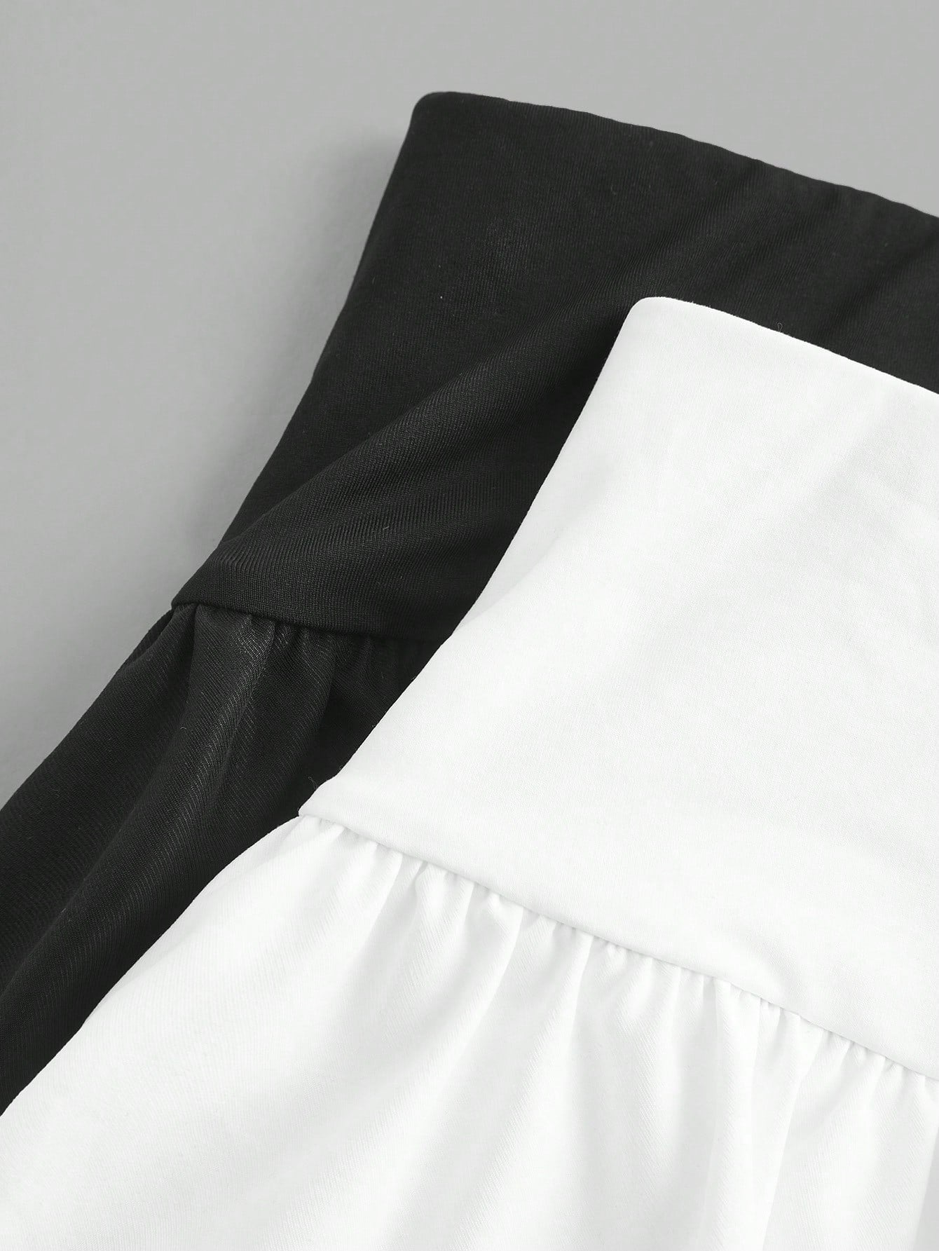 EZwear 2pcs Set Women Plain Floral Wrap A-Line Skirt