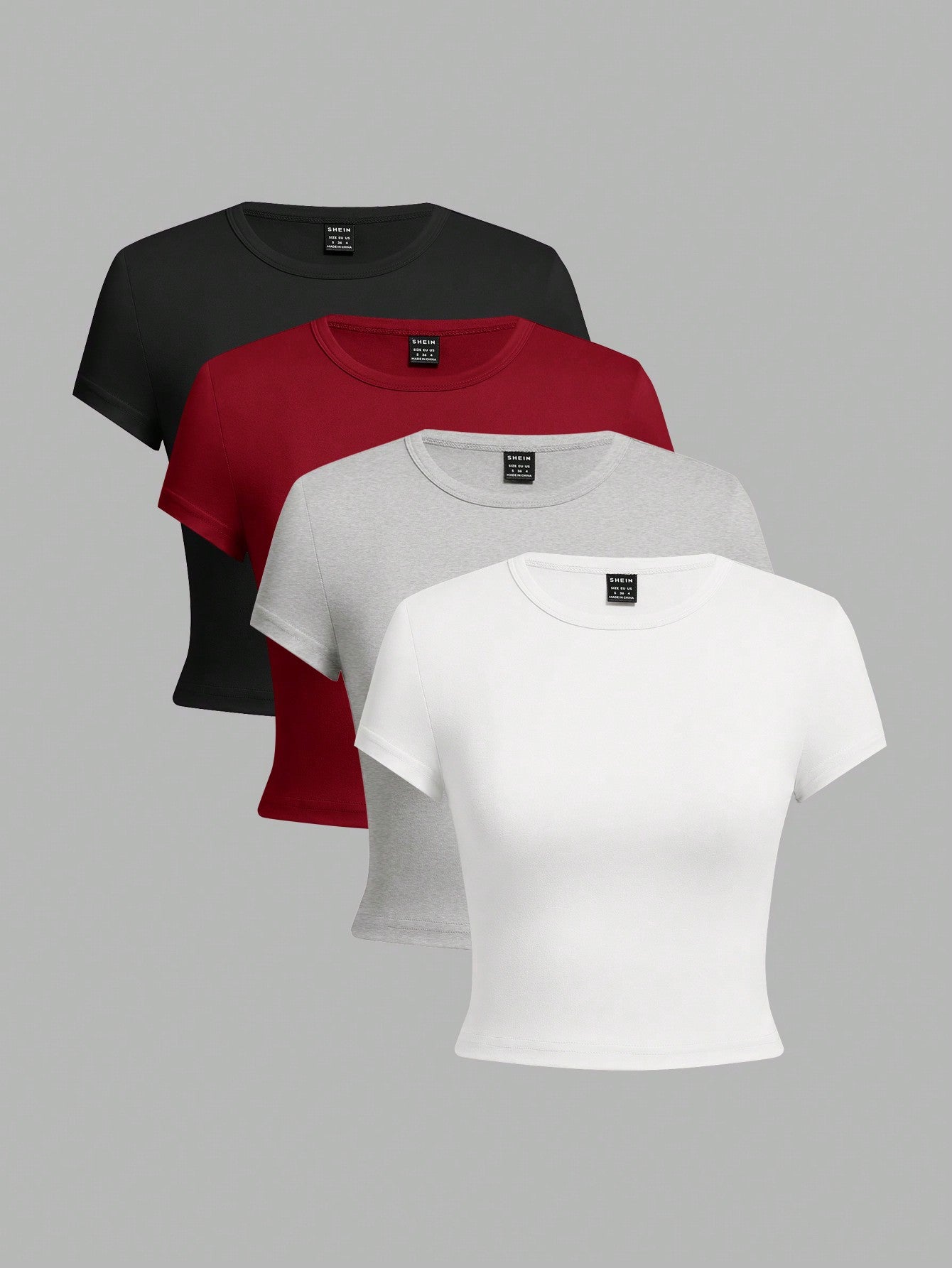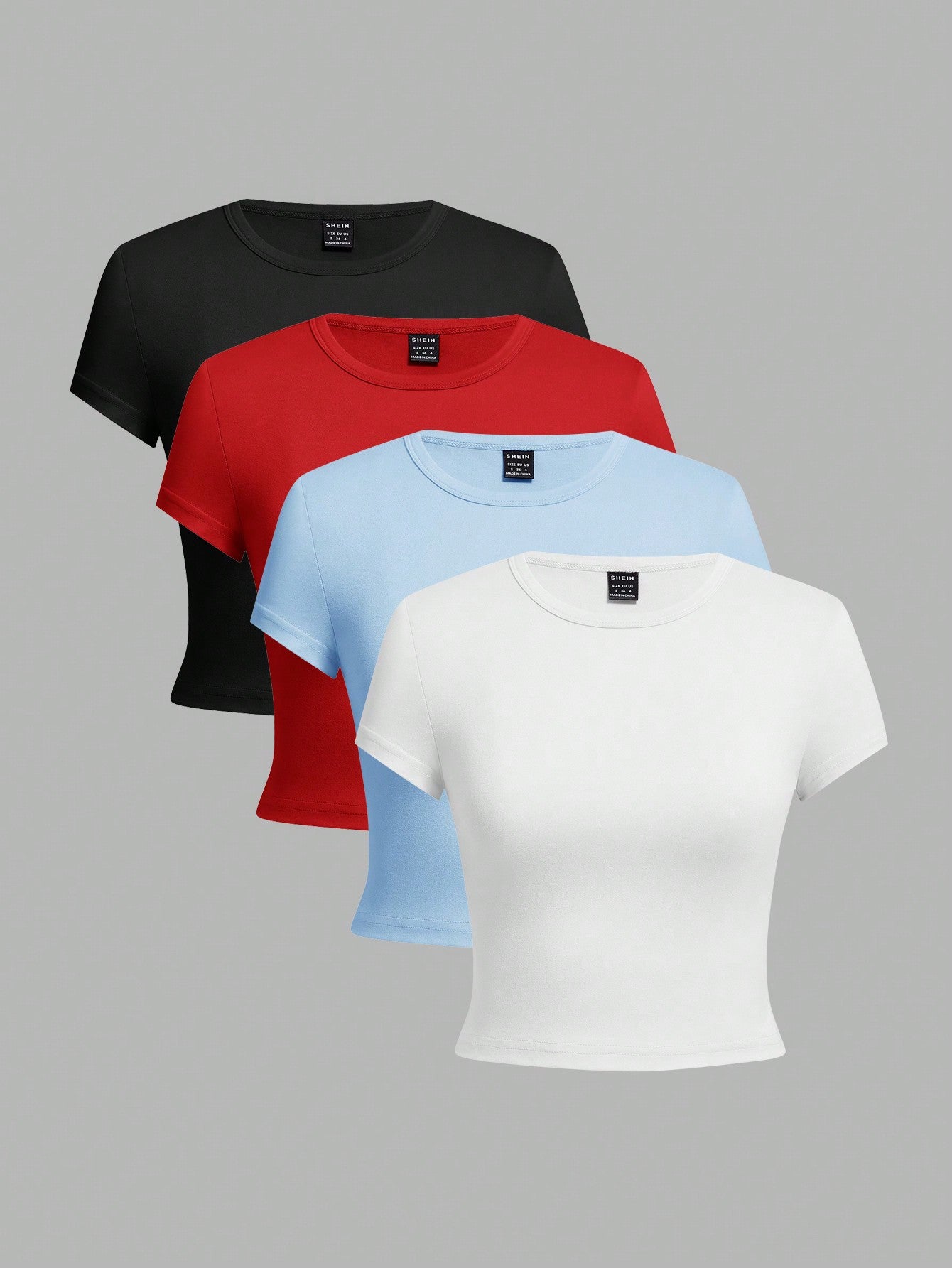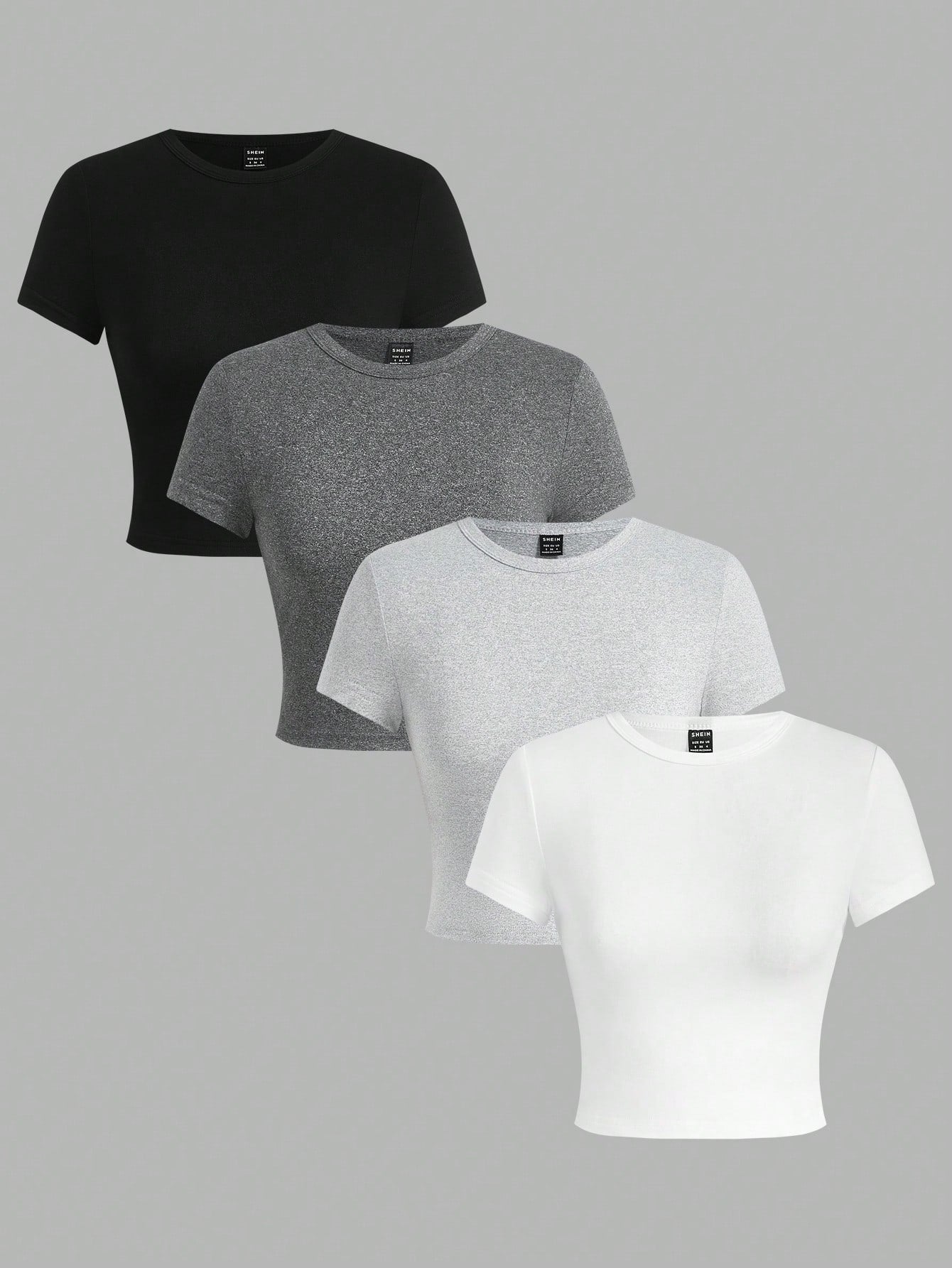 EZwear 4pcs/Pack Women Solid Color Leopard Print Round Neck Short Sleeve T-Shirt