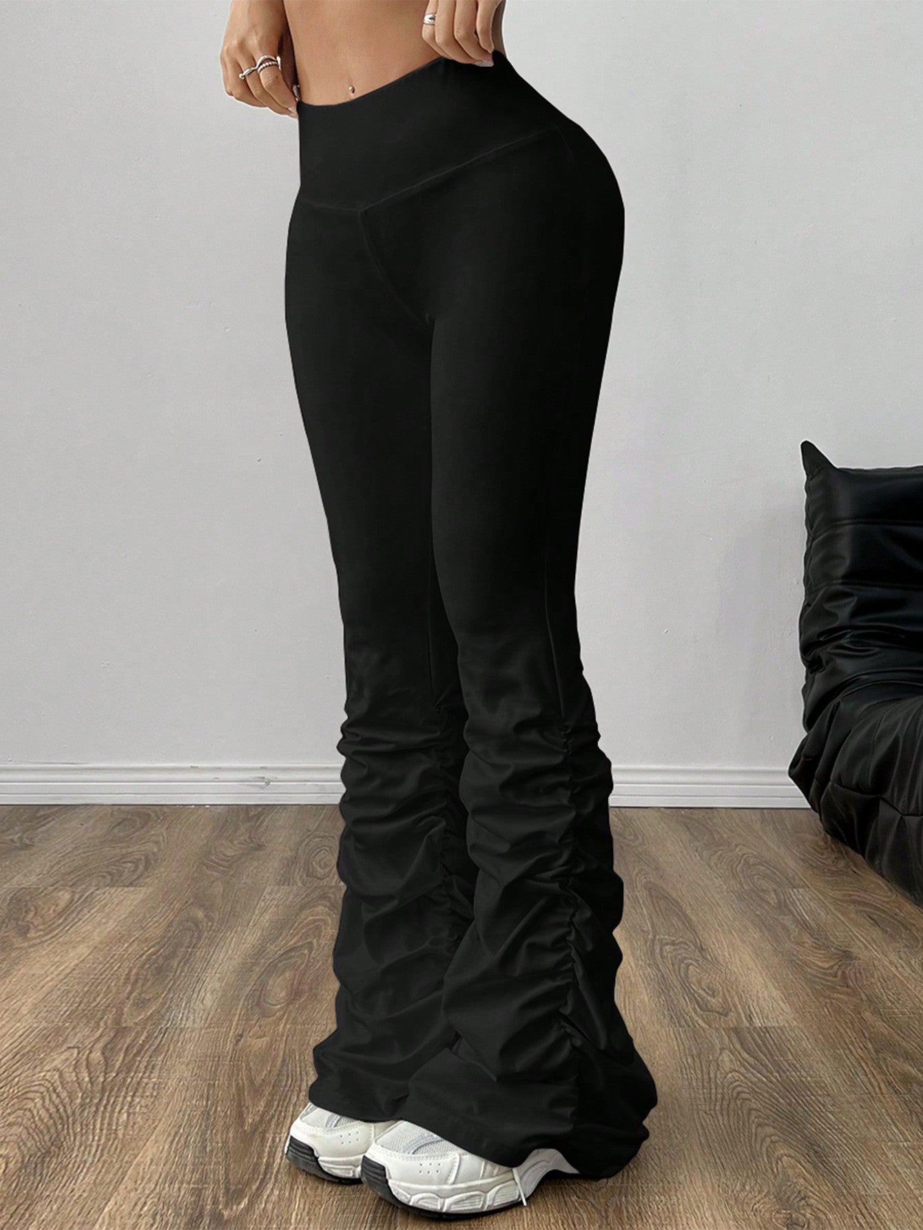 EZwear White Sheer-Proof Shrinkage With Pleated Flare Pants For Spring And Summer