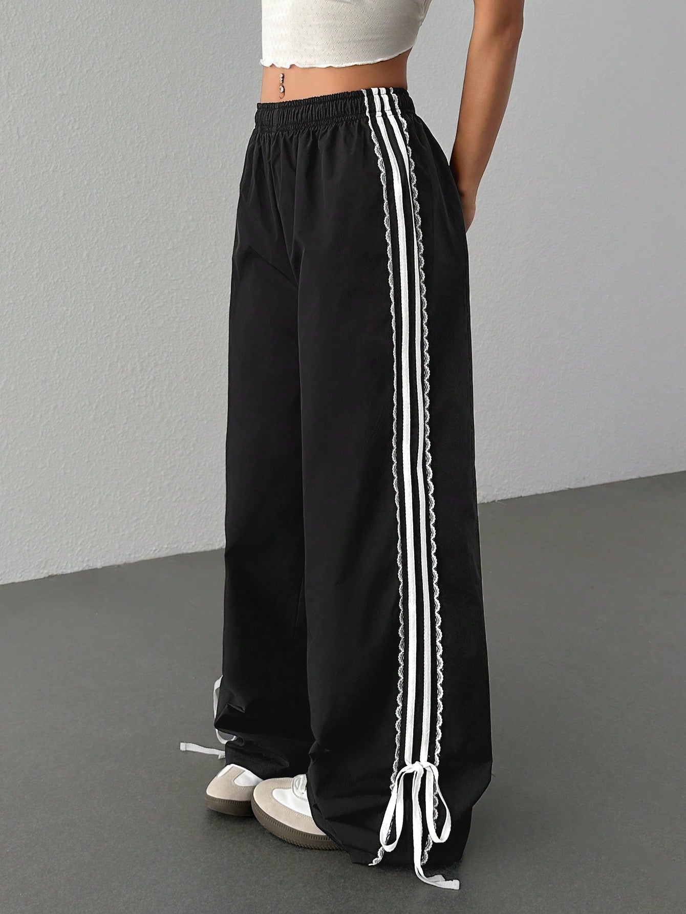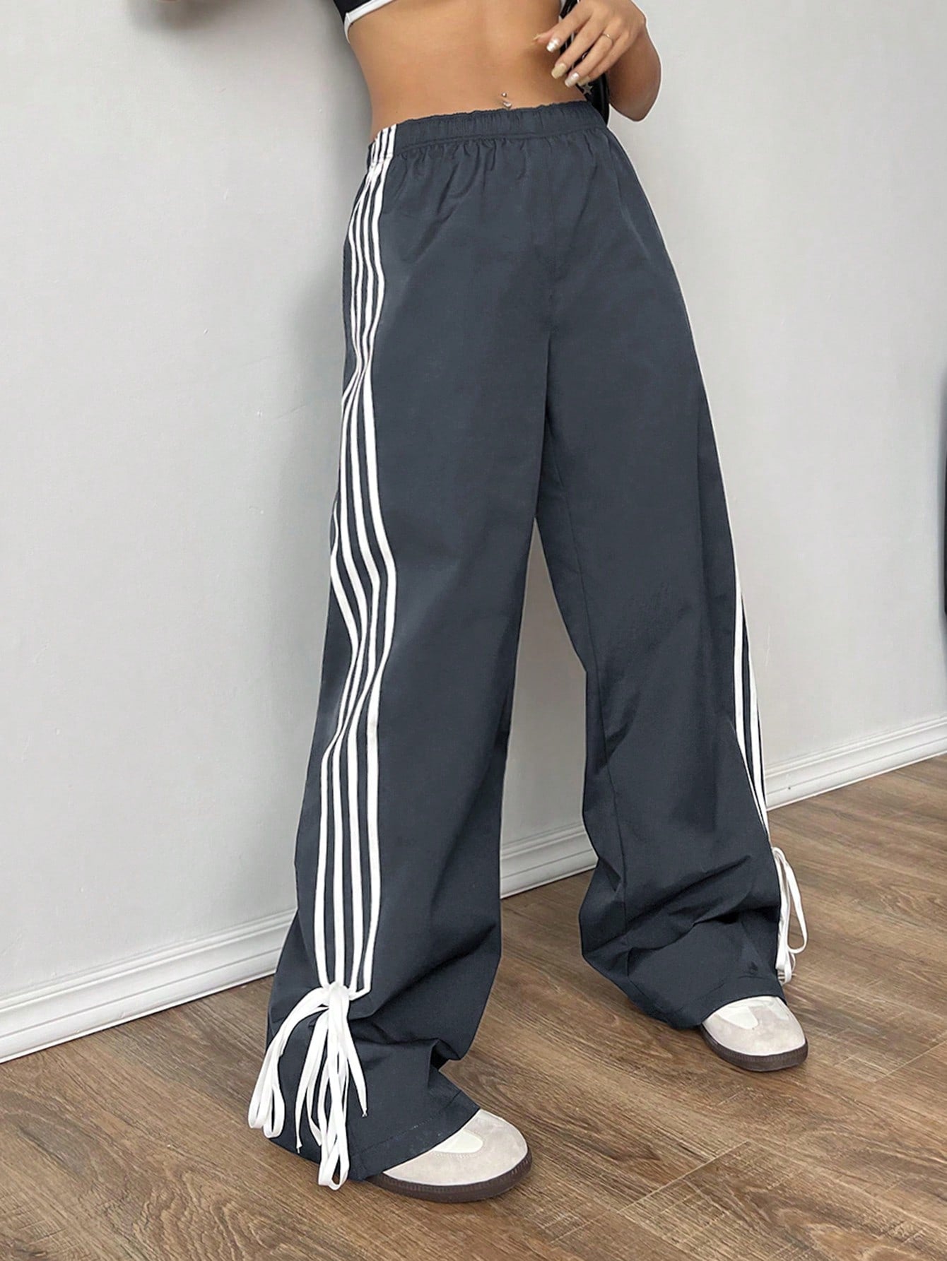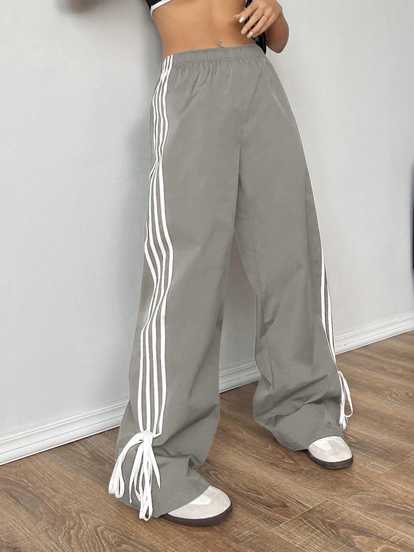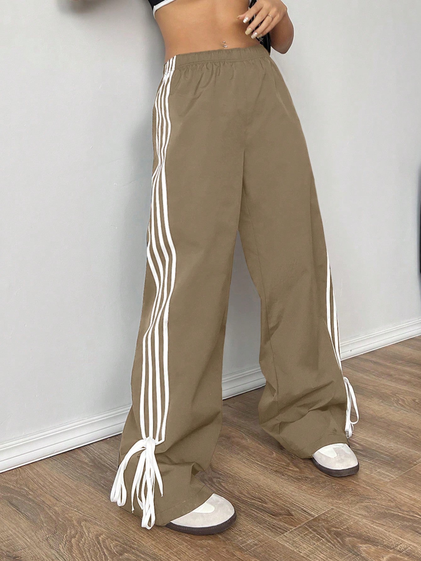 EZwear Women Casual Leopard Print Side Bow Tie Pants