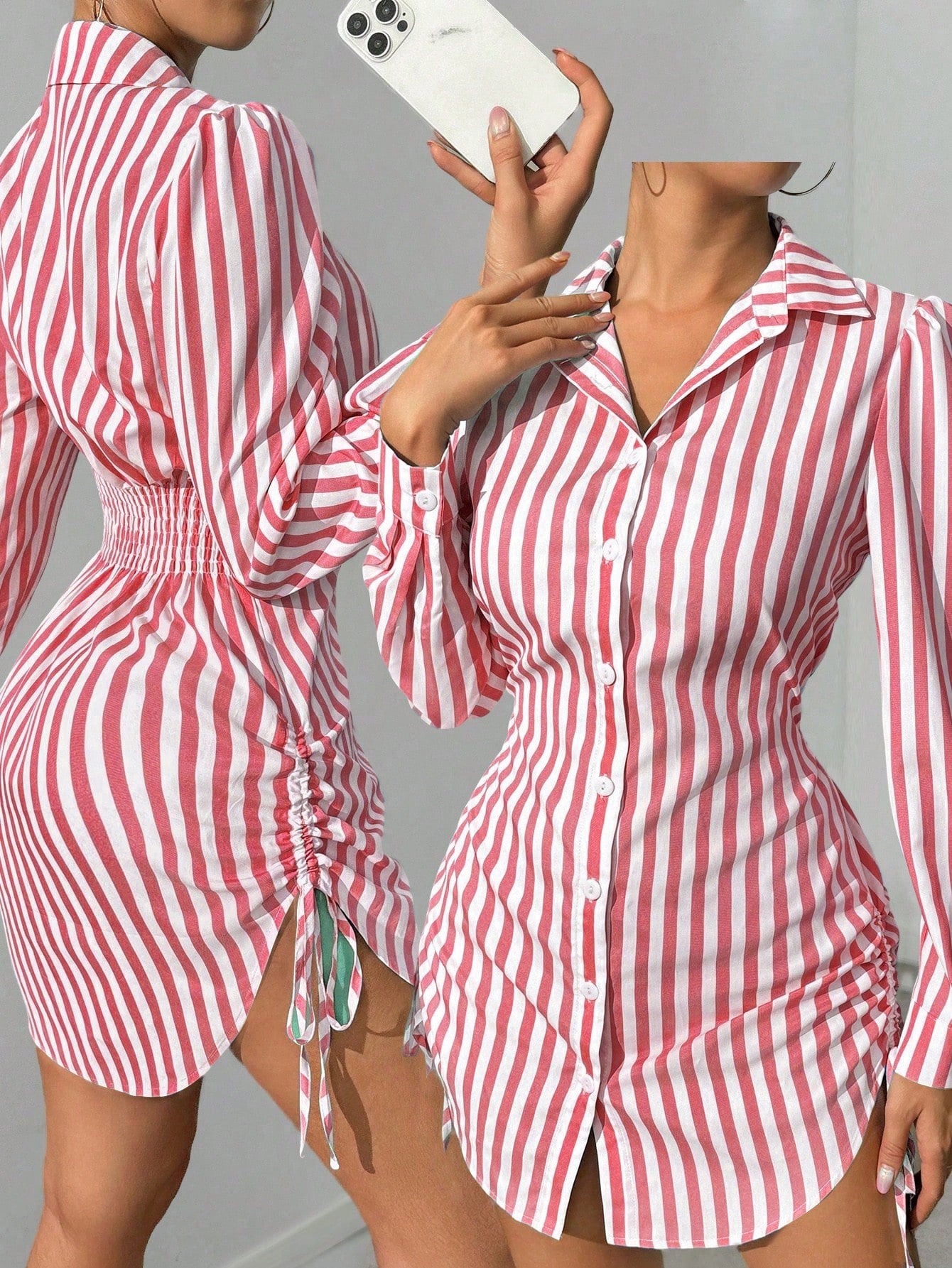 Foxxy Striped Side Drawstring Shirt Dress