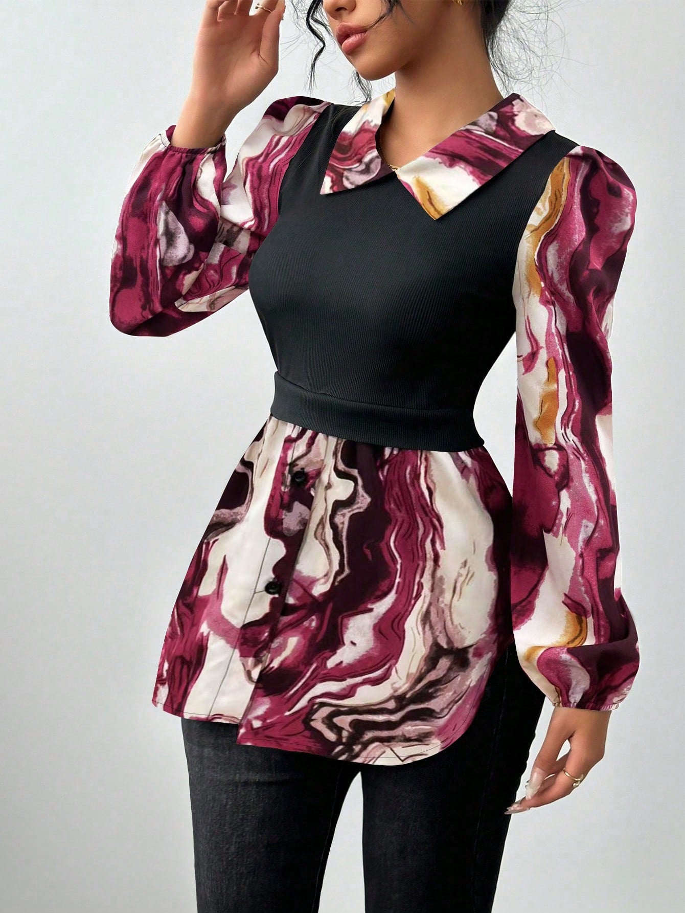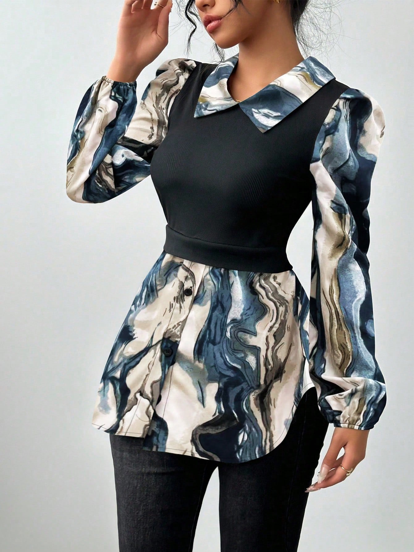 Frenchy Embroidered Mesh Design Contrast Color Knitted Ribbed Two-Piece Top