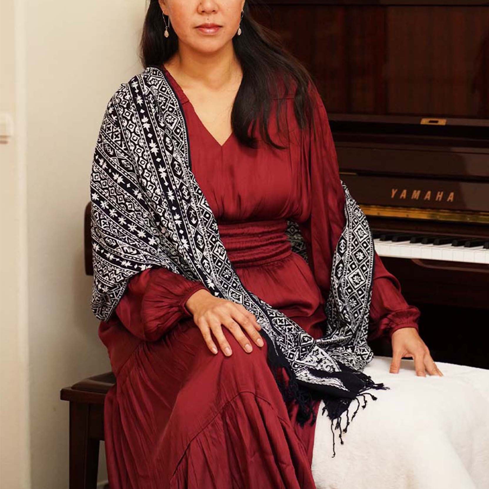 This is a hand-dyed and hand-stamped batik scarf, handmade by artisans. This fabric is handmade by artisans in Java using centuries old wax & dye batik technique.