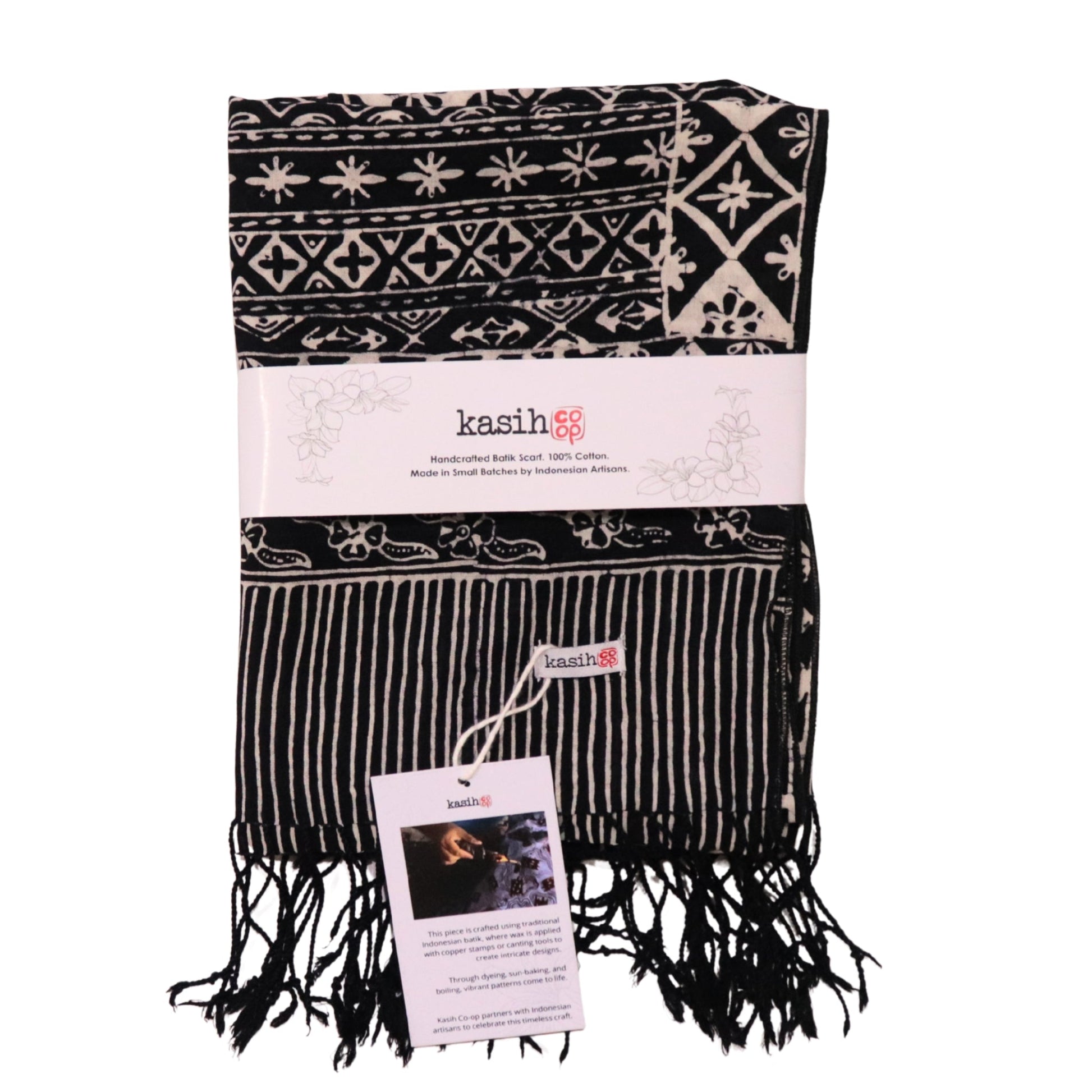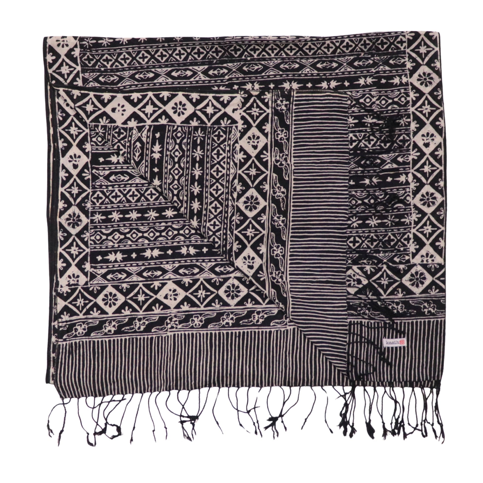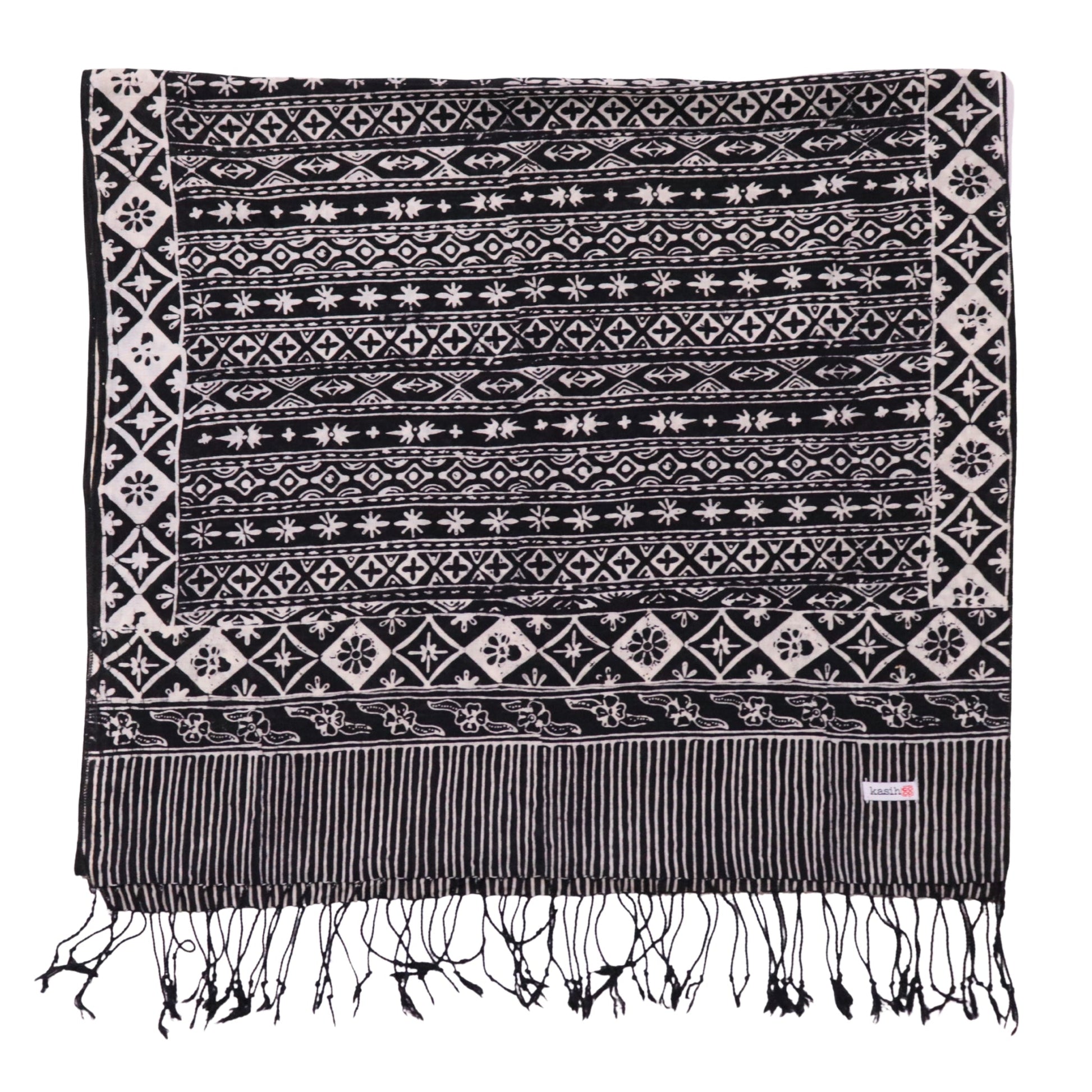 Hand Dyed Batik Scarf, 100% Cotton Fabric, Black White, Geometric