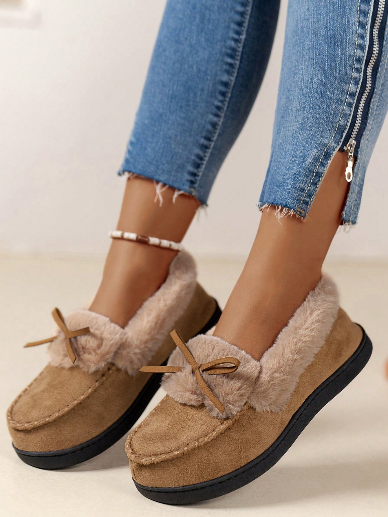 High-Density Memory Foam Slippers With Long Plush Interior, Winter Indoor Slippers, Bow Slippers, Non-Slip Slippers, Women's Slippers, Holiday Gift