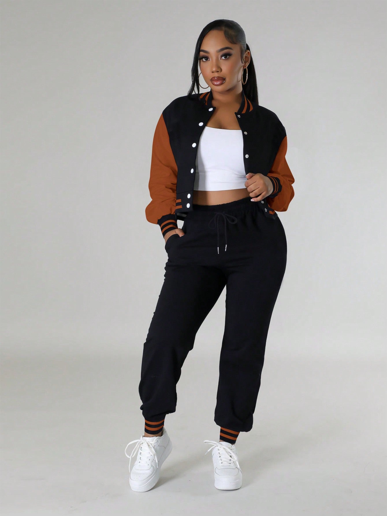 Ladies' Fashionable Casual Sports Style Baseball Suit Sports Pants Two-Piece Set