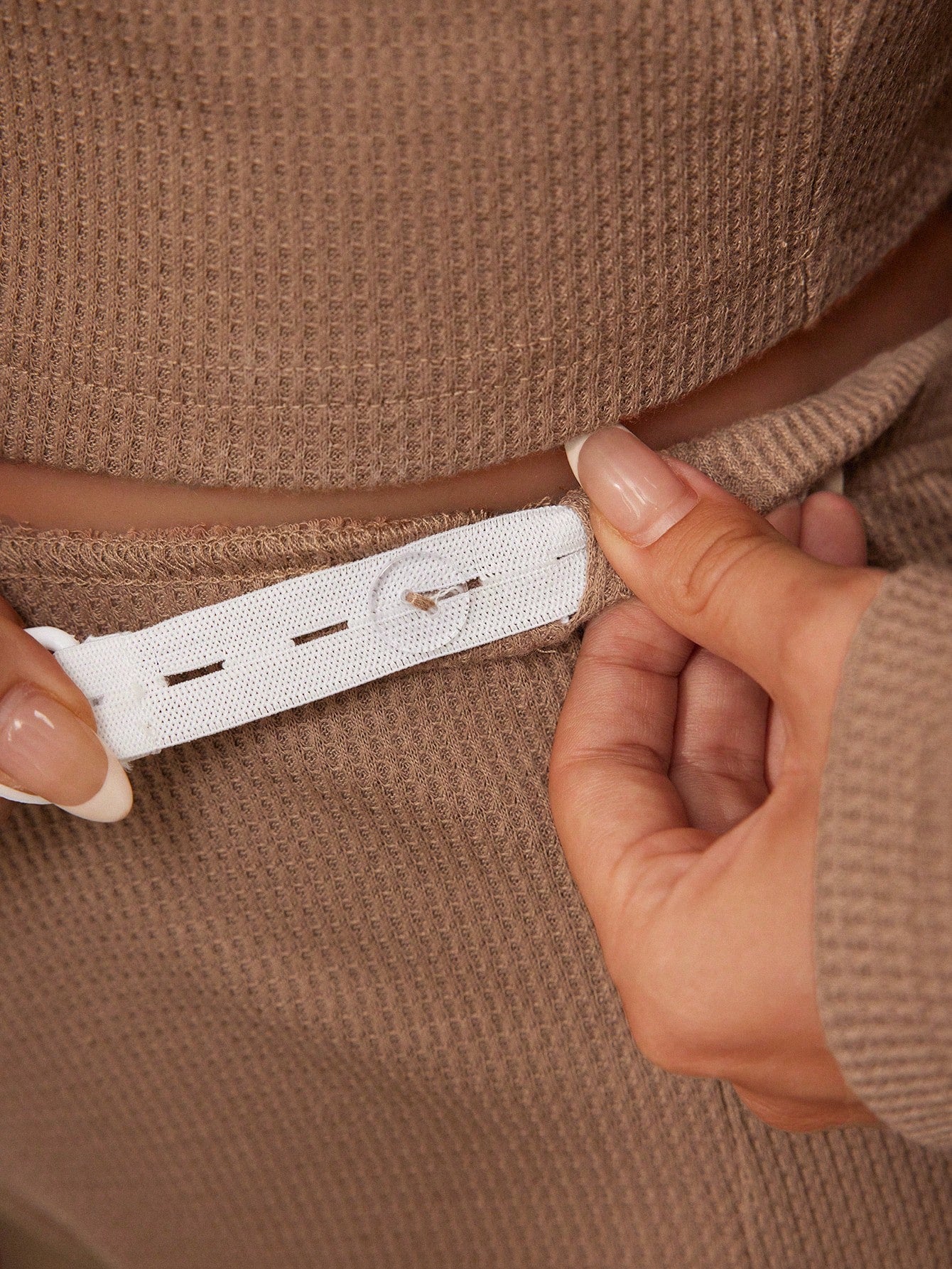 Maternity Waffle Knit Tank Top And Adjustable Bow-Tied Waist Leggings Set With Coat