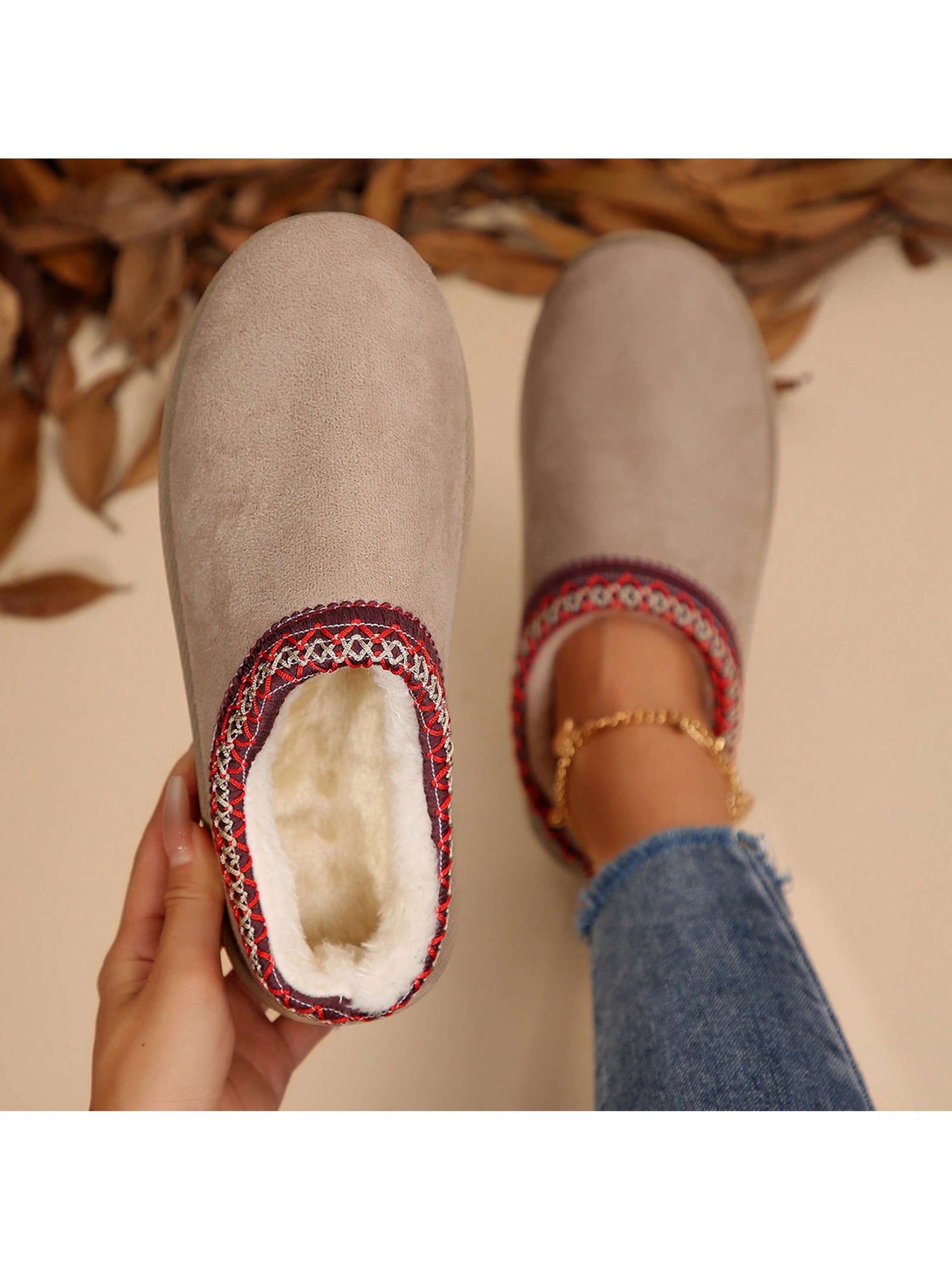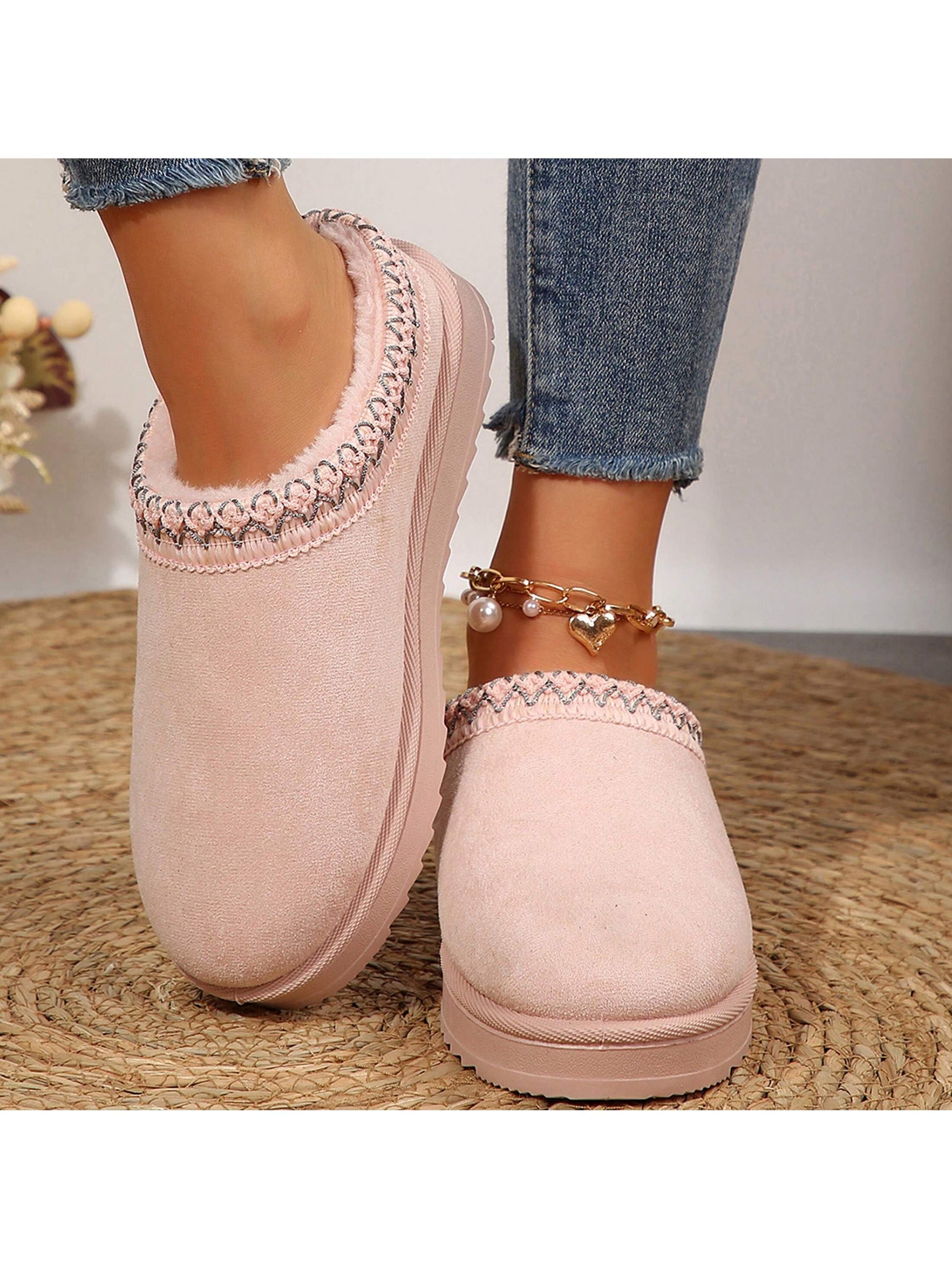 Merking Women's Winter Slippers, Platform Snow Boots, Thickened Flat Boots, Fur Lining, Warm Shoes, Outdoor Non Slip Boots
