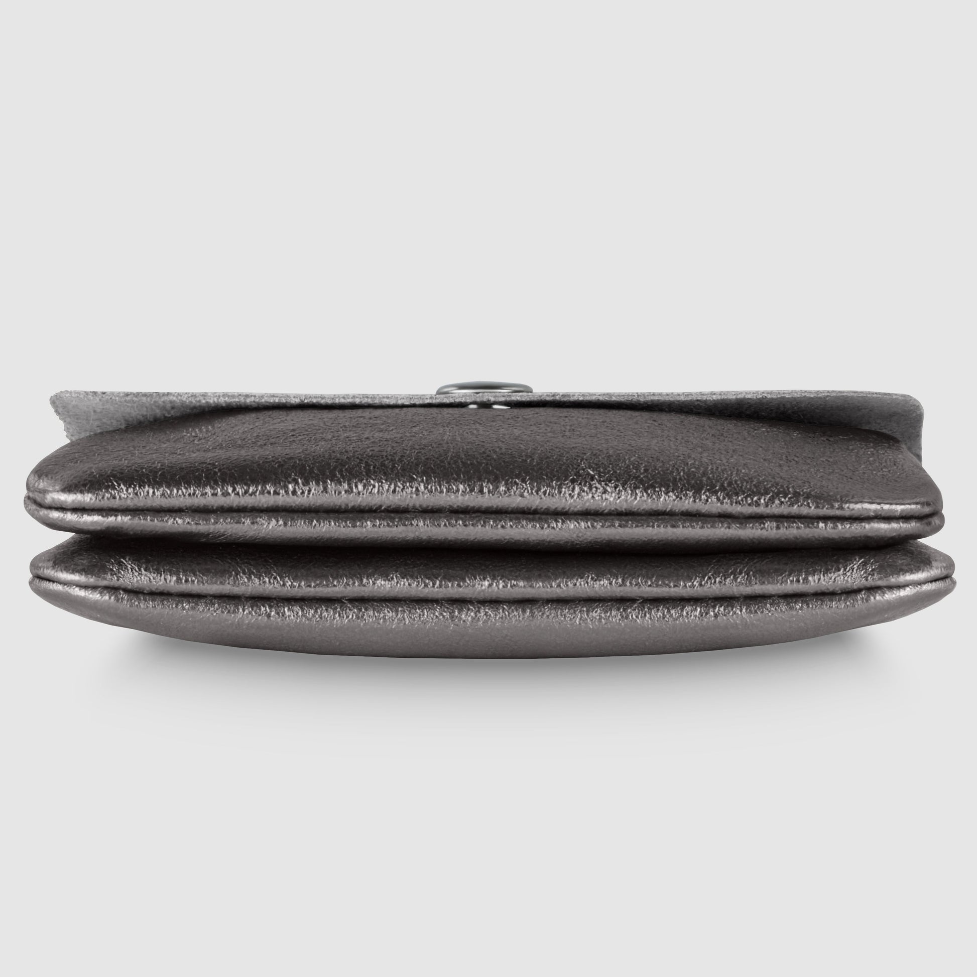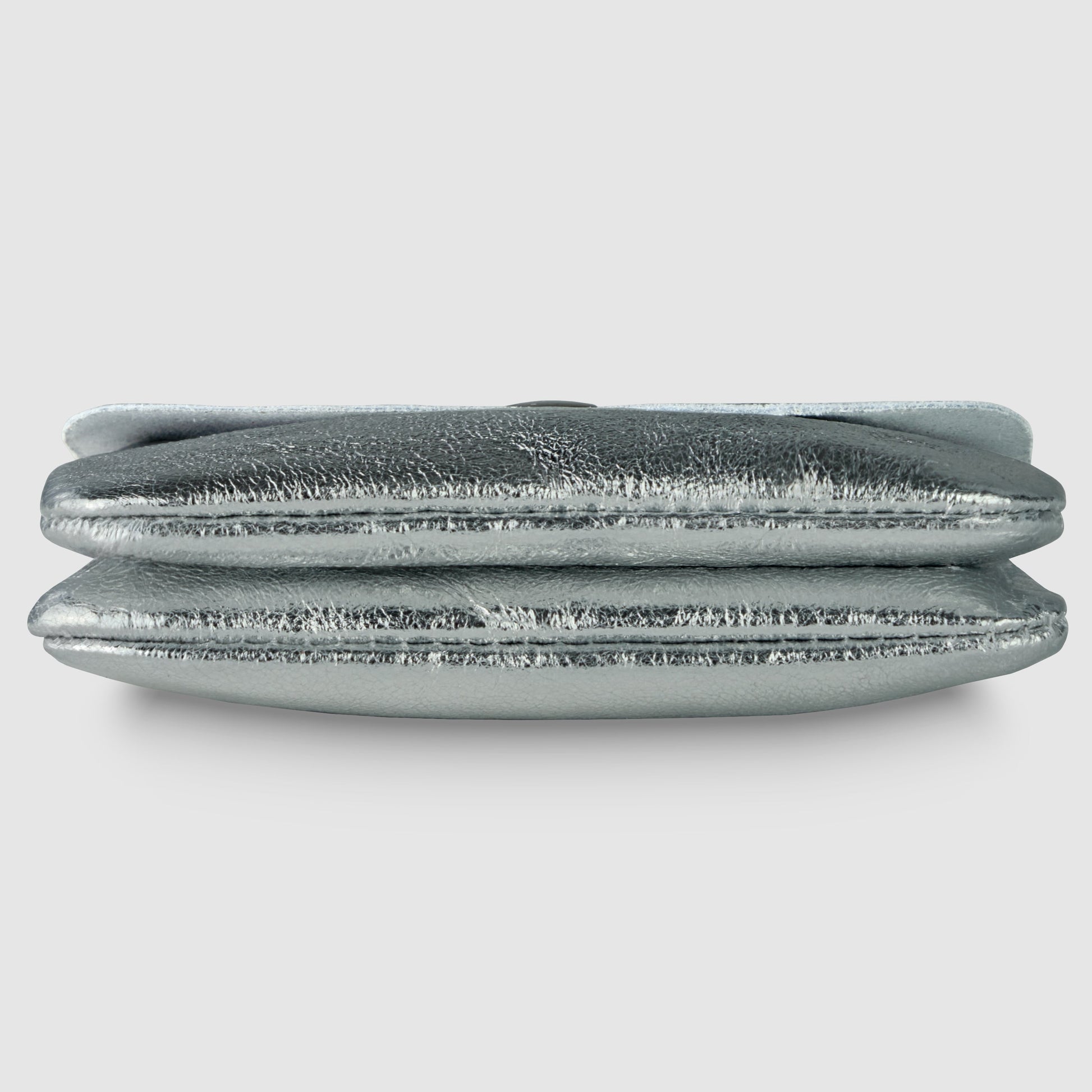 The snap-flap closure ensures secure storage, while its soft structure, precise stitching, and silver-toned hardware create a harmonious and pleasant everyday experience.