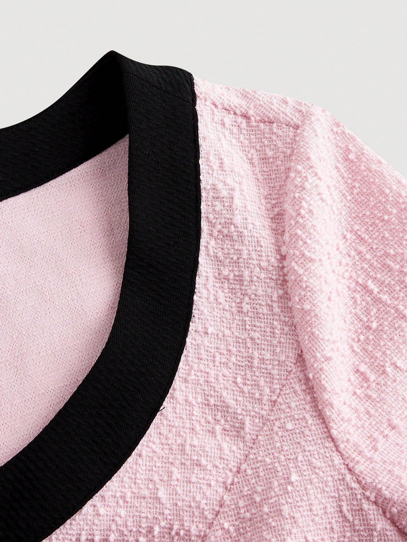 MOD Black & White Contrast Pleat Detail Fitted Long Sleeve Knit Dress