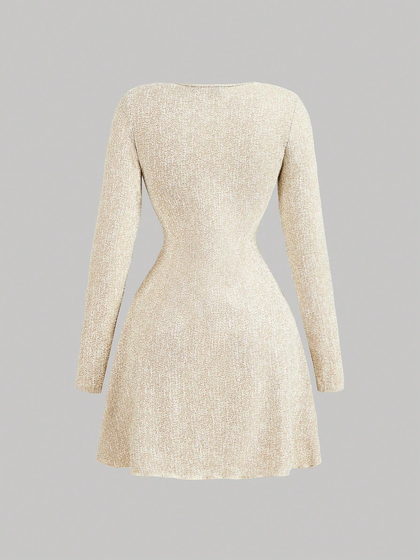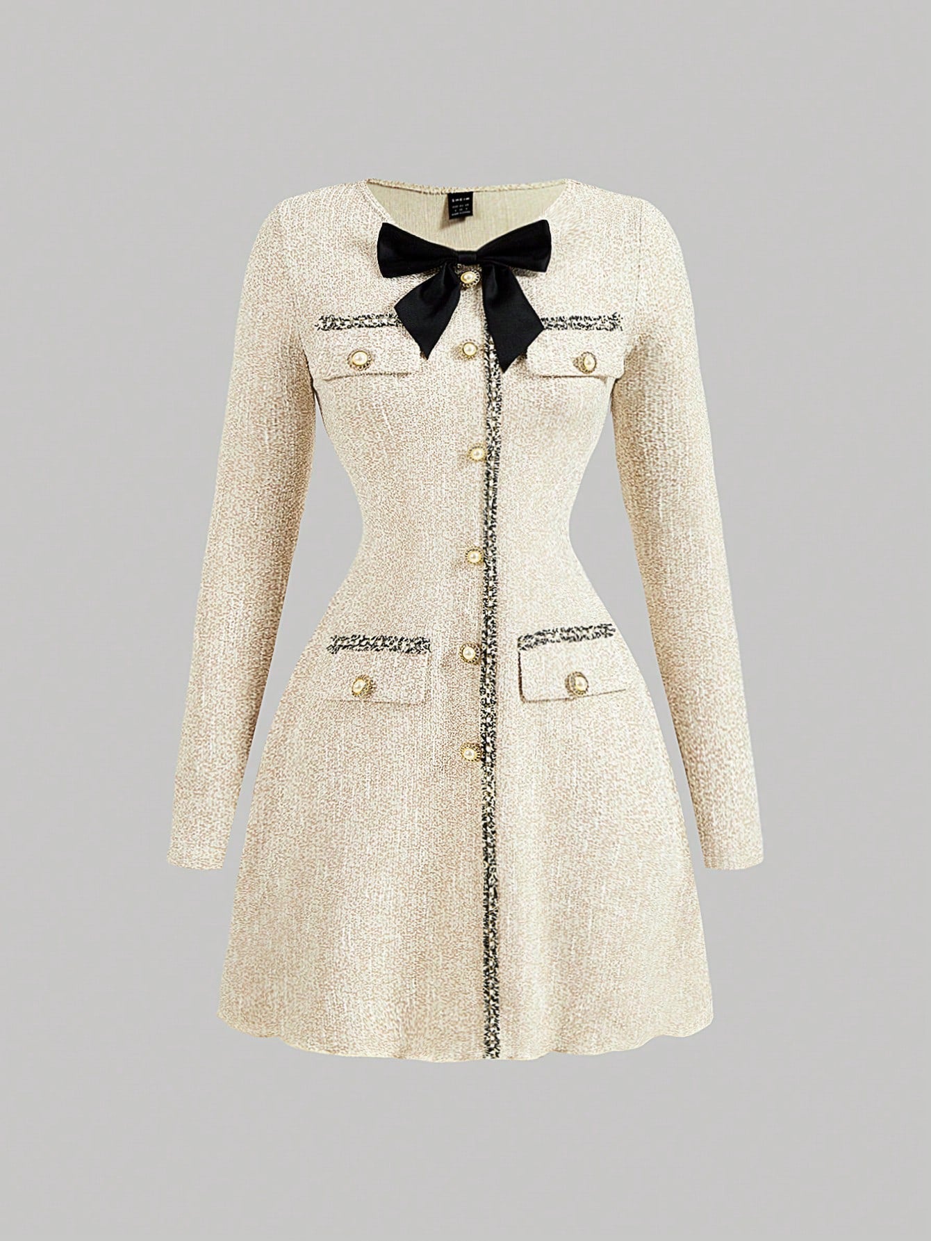 MOD Front Bow Decoration, Small Fragrant Apricot Color, Party Dress, Elegant Dress, Party Dress, Winter Dress, New Years Dress, Thanksgiving Dress,Holiday Dress