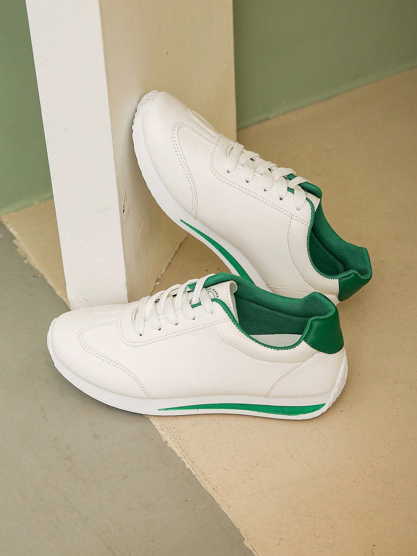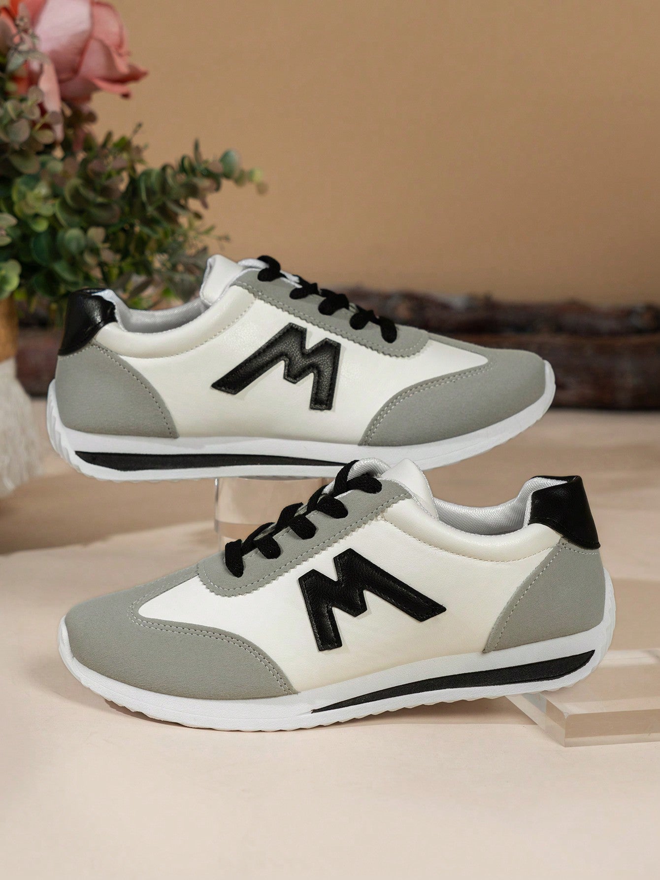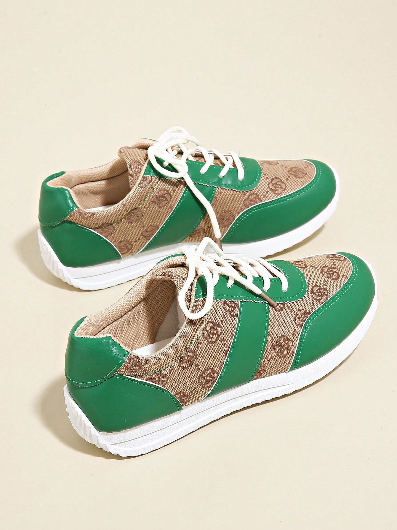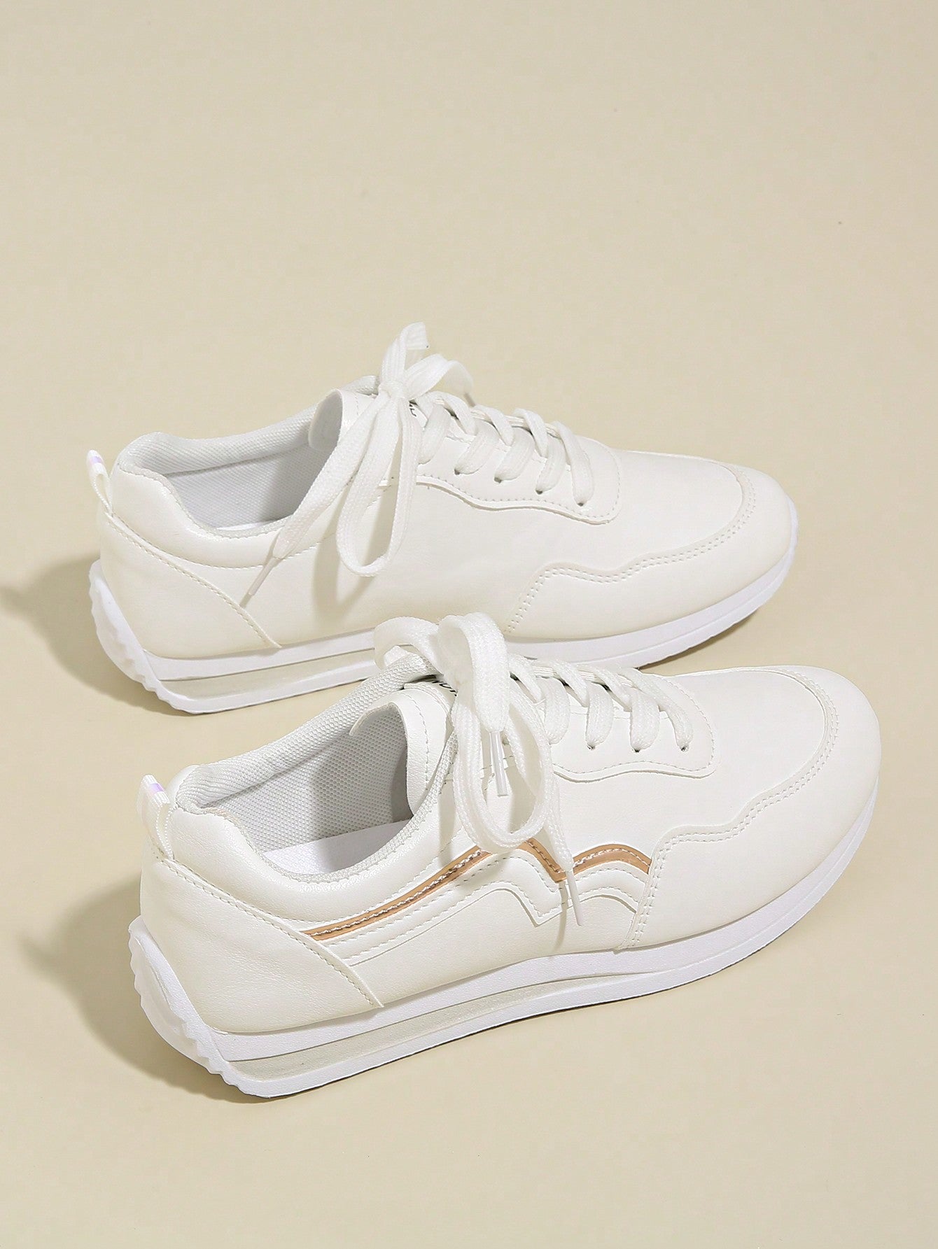 Plus Size 36-43 Women's Breathable & Odor-Resistant Flat Lace-Up Agane Running Sneakers, Anti-Slip, Suitable For Spring/Autumn, Hiking, Dancing, Fitness, Red Leather