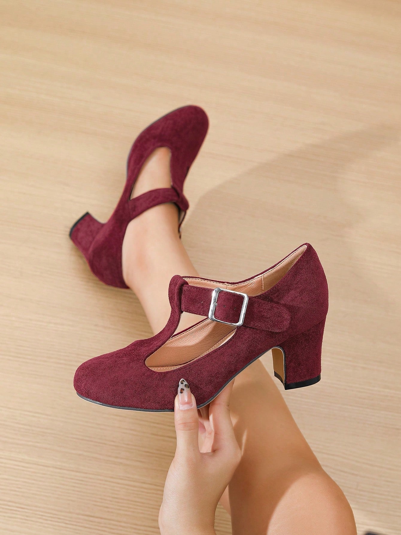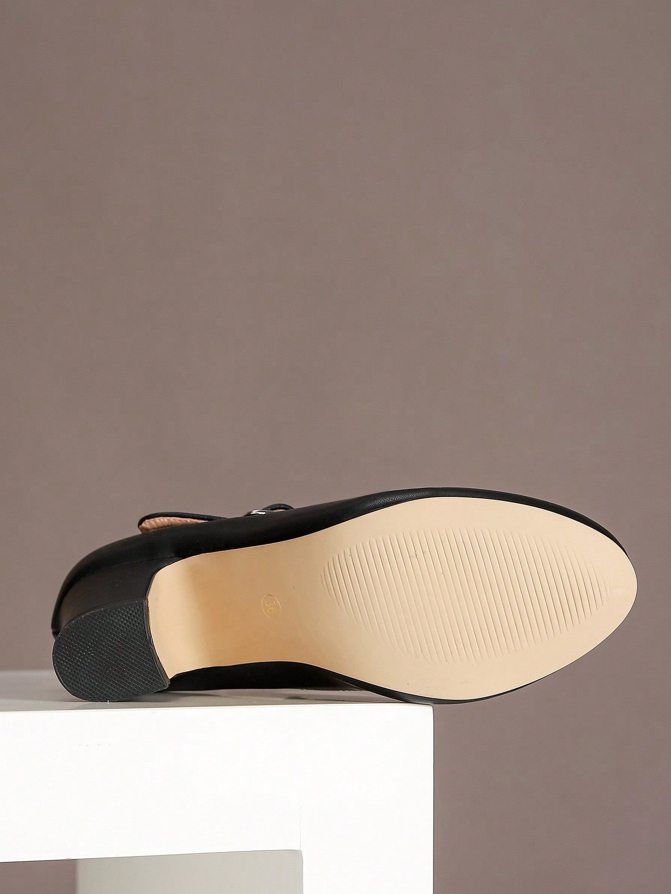 Plus Size Women Wide Width Faux Leather Mary Jane Strap Platform Chunky High Heel Dress Shoes, Formal Work Pumps, Black, Suitable For Outdoor And Everyday