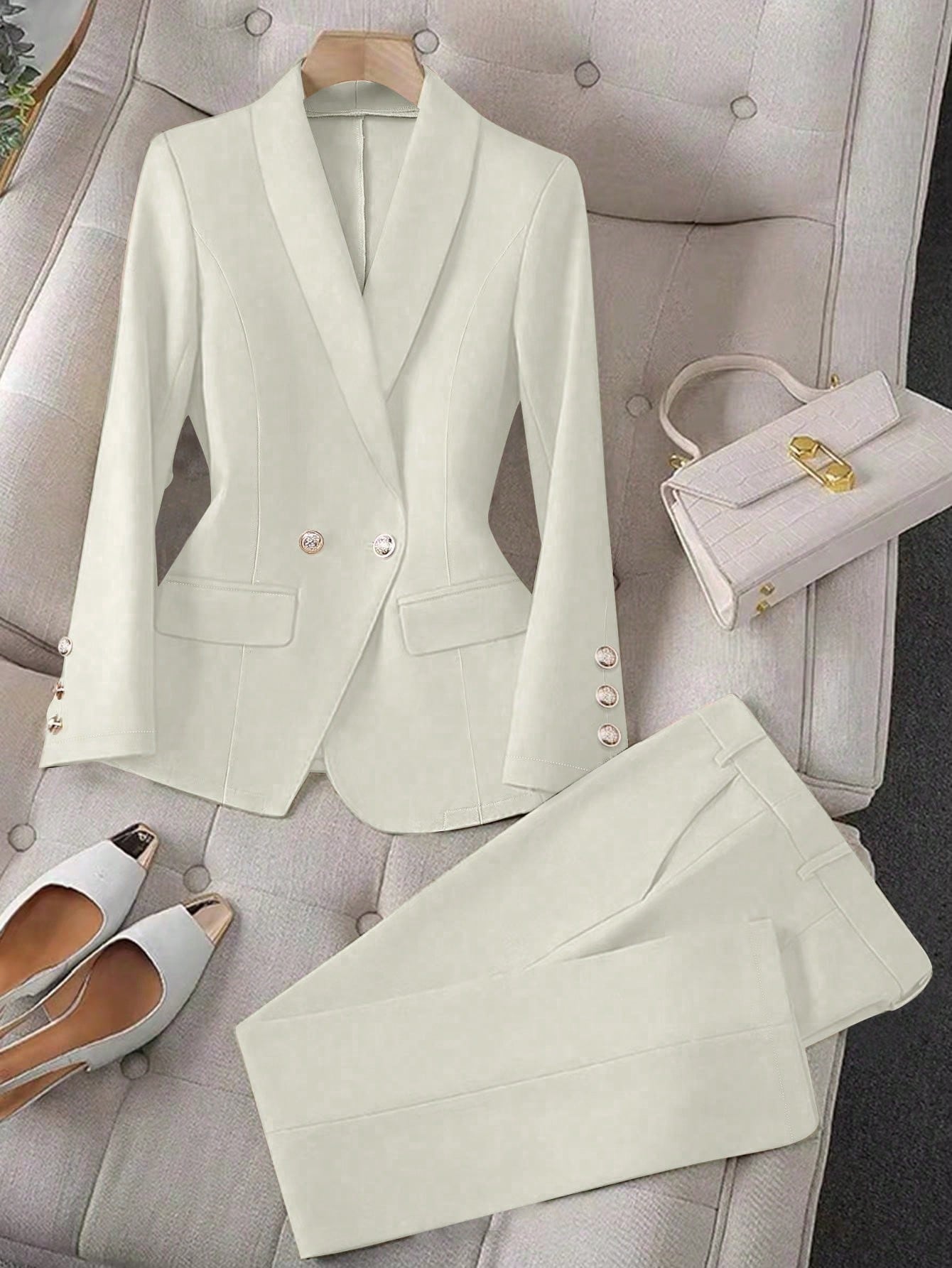 Raffinéa Apricot Color Long Sleeve Lapel Women's Suit Jacket And Pants Set