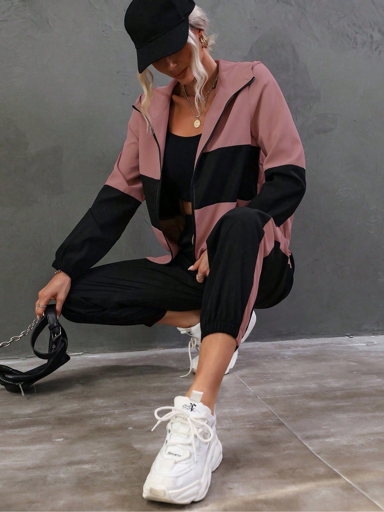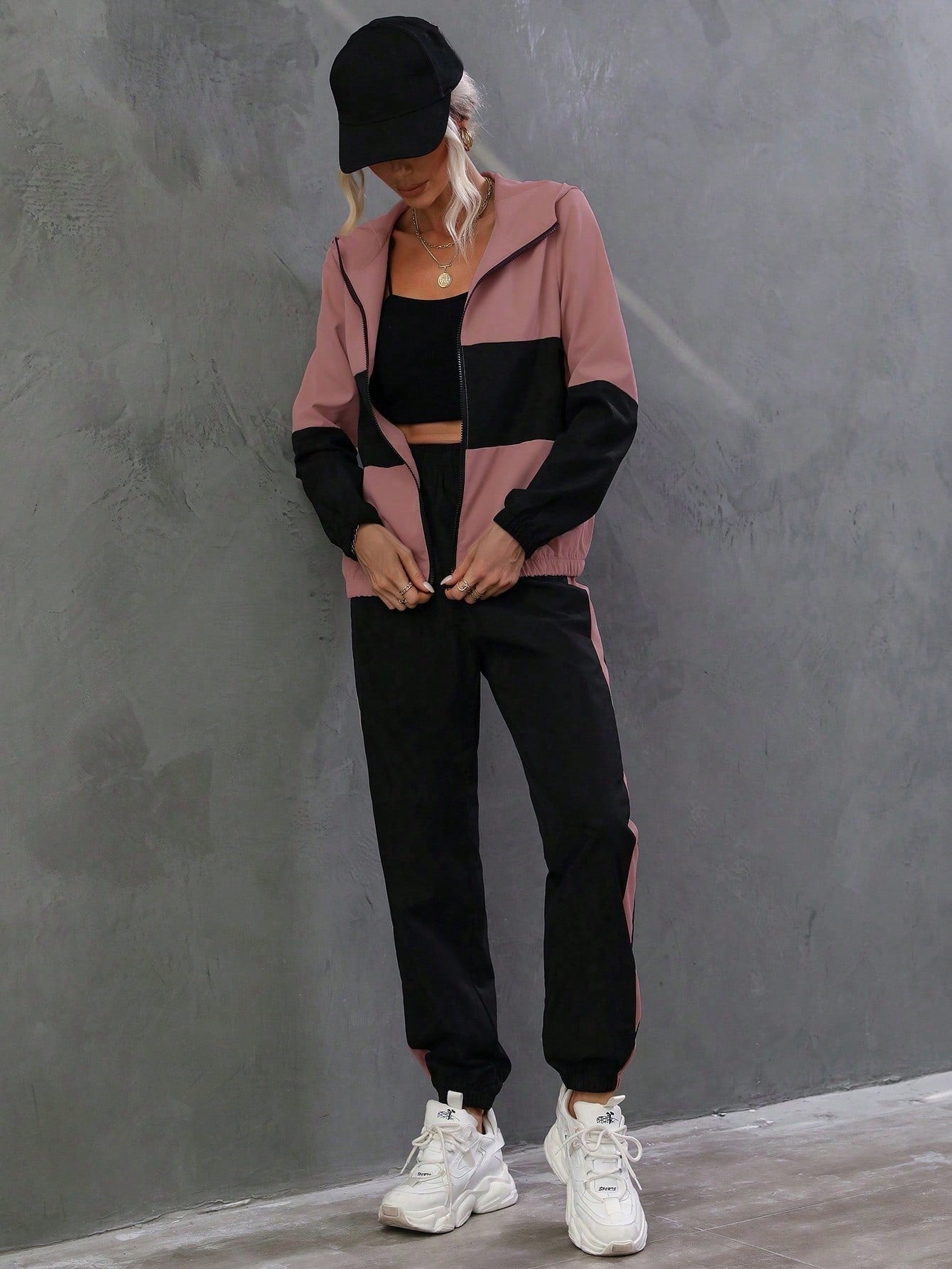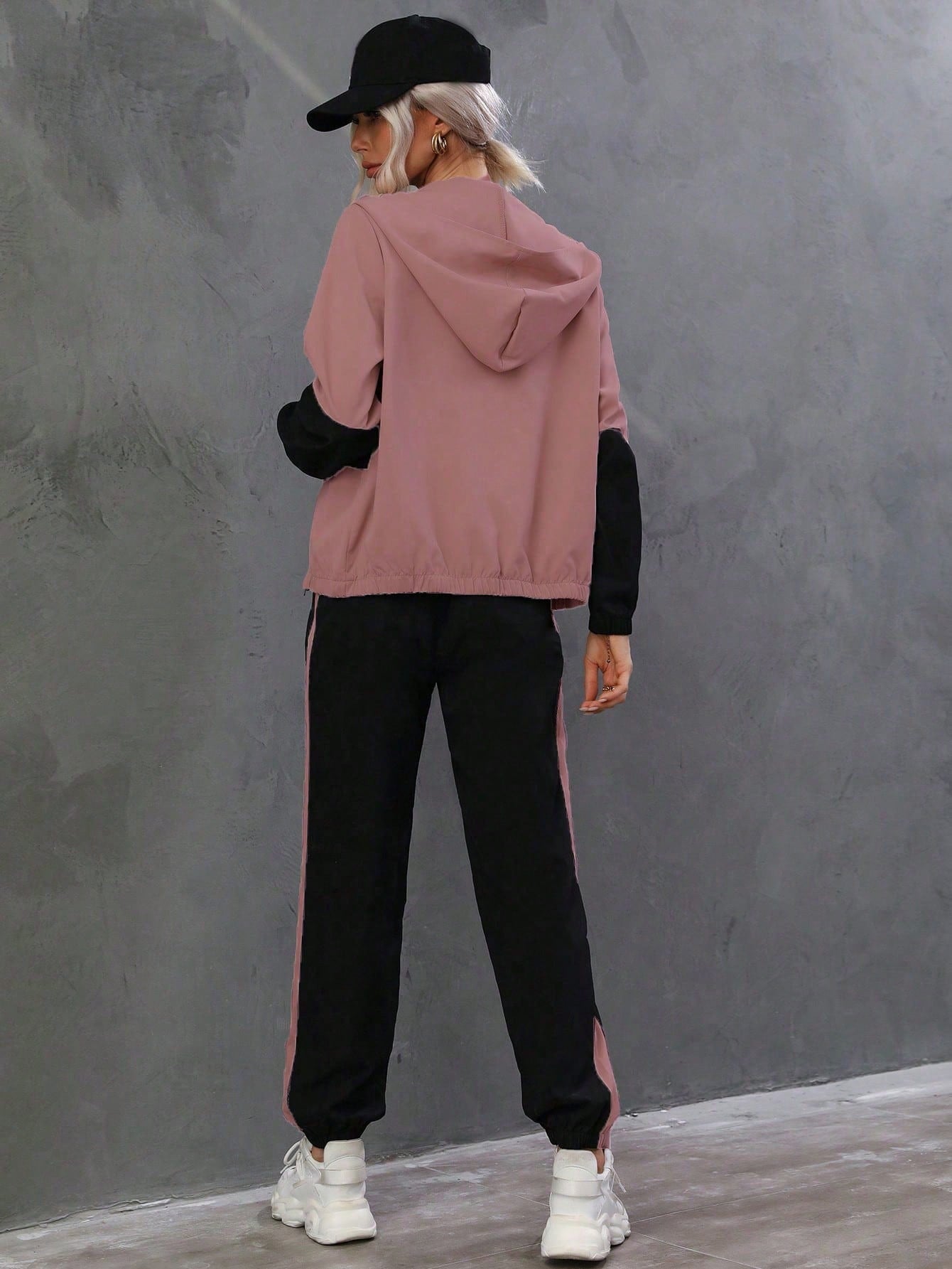 Relaxiva Women's Contrast Color Athletic Two Piece Set