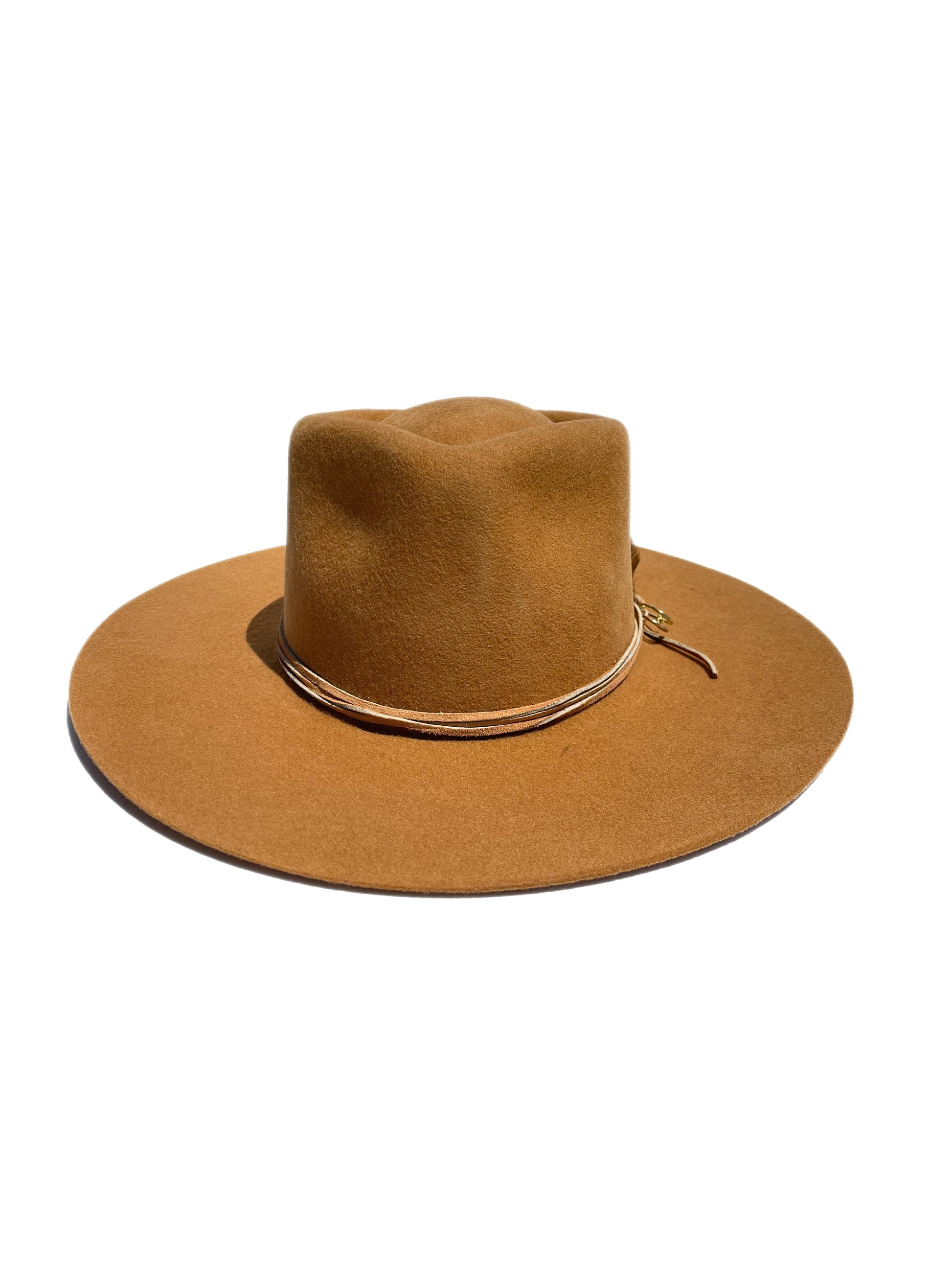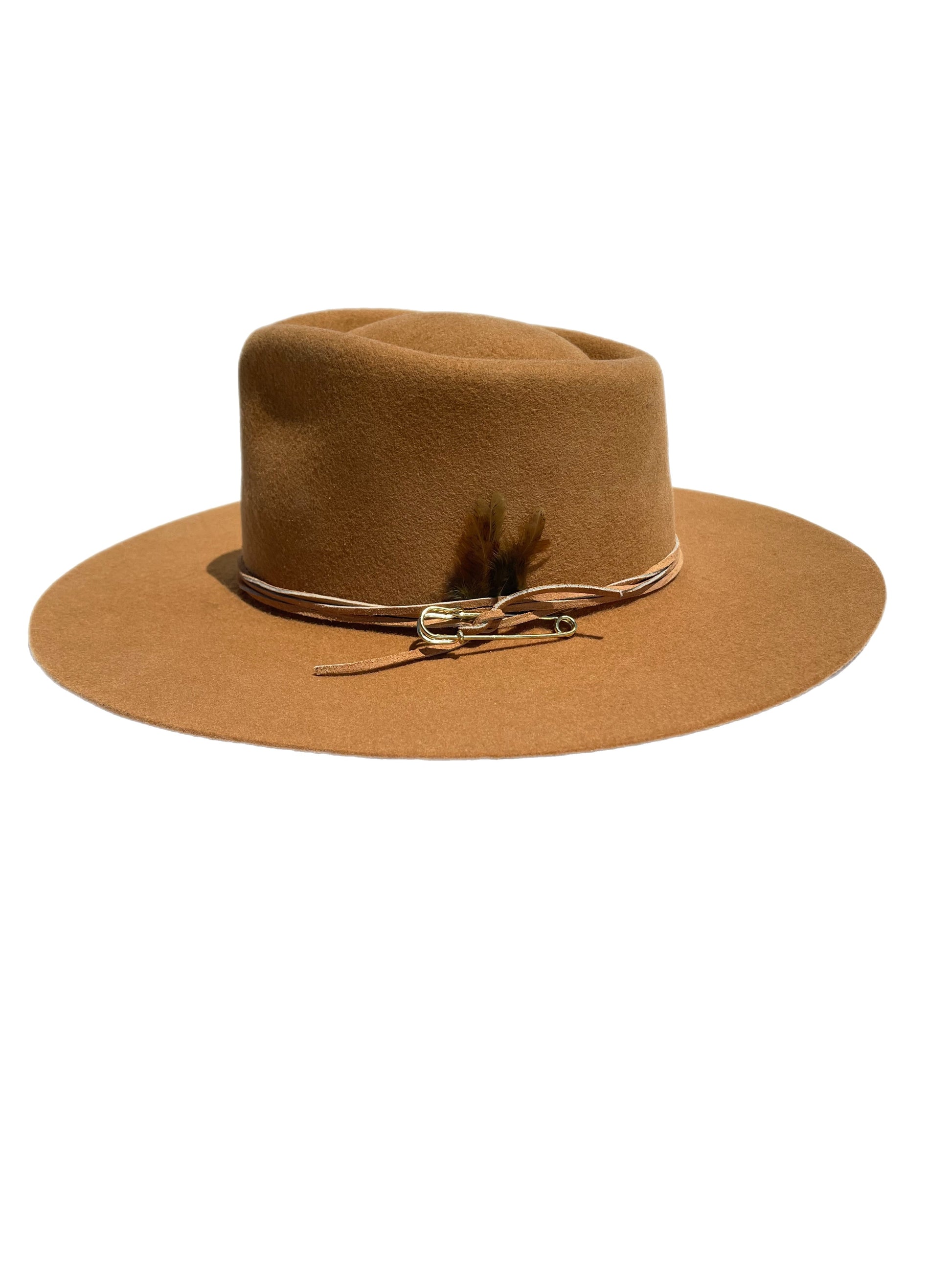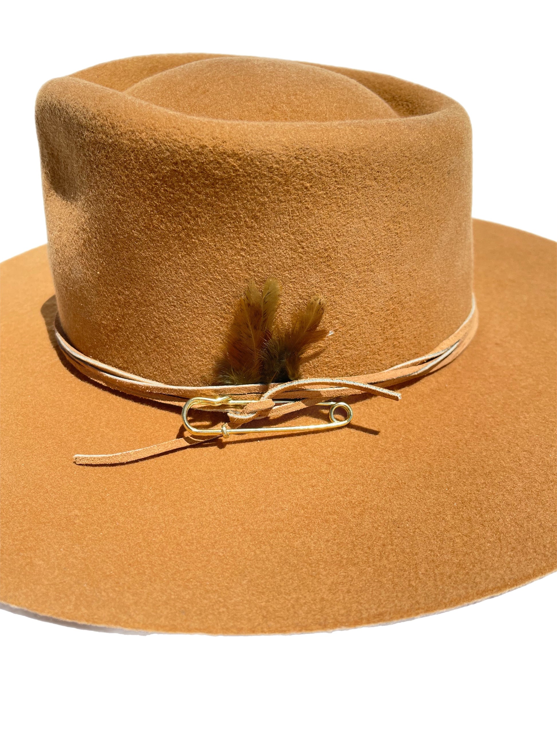 Her happiness radiates within, just like the sun. When she has her crown on she let’s her creativity flow, she is playful and spontaneous. This beautiful color reminds us of sun rays that shine upon us daily. It pairs perfectly with its leather wrap, oversized gold safety pin, and feathers that signify your strength, power, and freedom to take on whatever your heart desires.