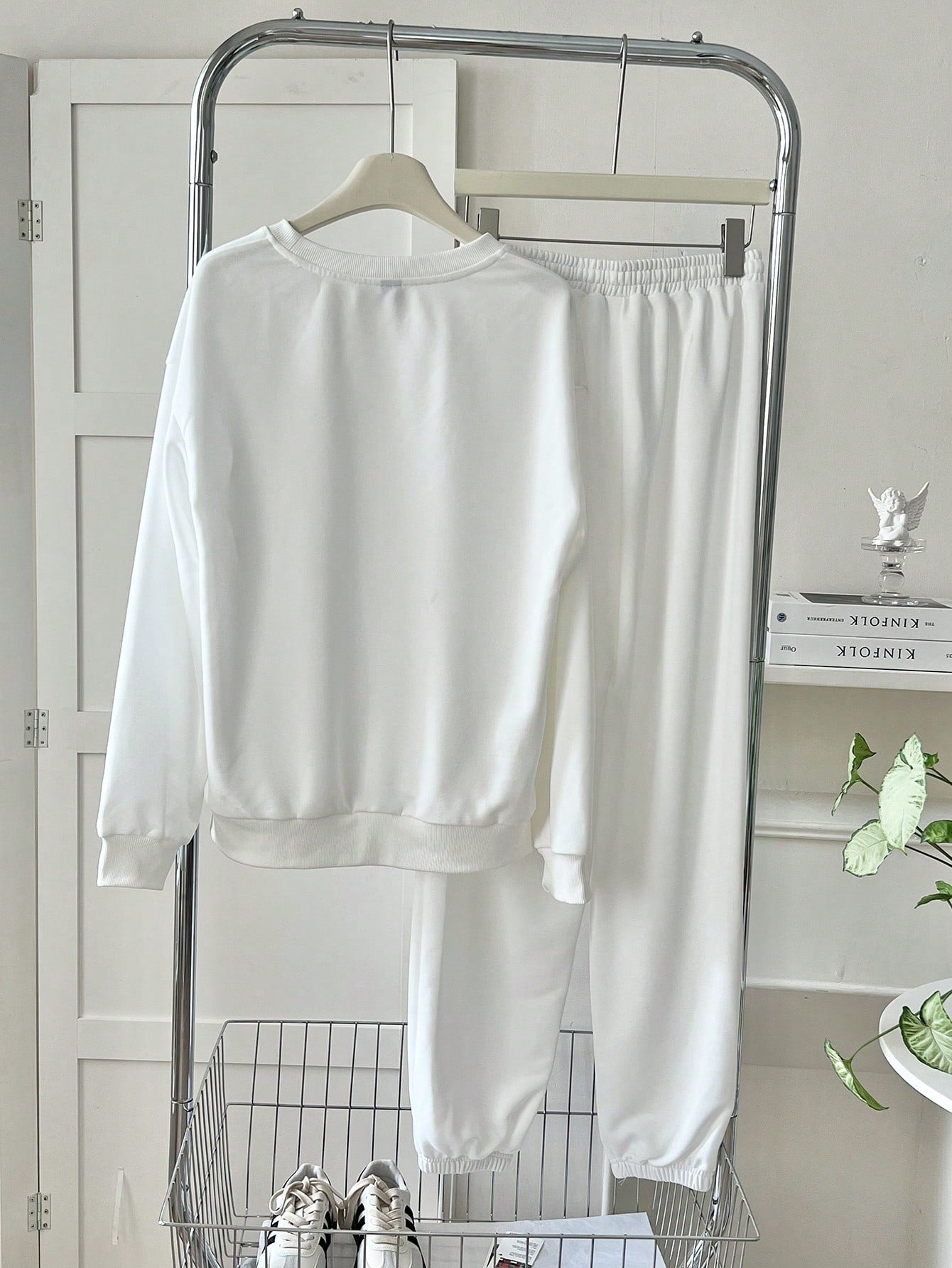 Slayr 2pcs/Set Women 23 Graphic Crew Neck Oversized Loose Fit Long Sleeve Sweatshirt And Long Drawstring Hem Casual Sweatpants, Autumn/Winter