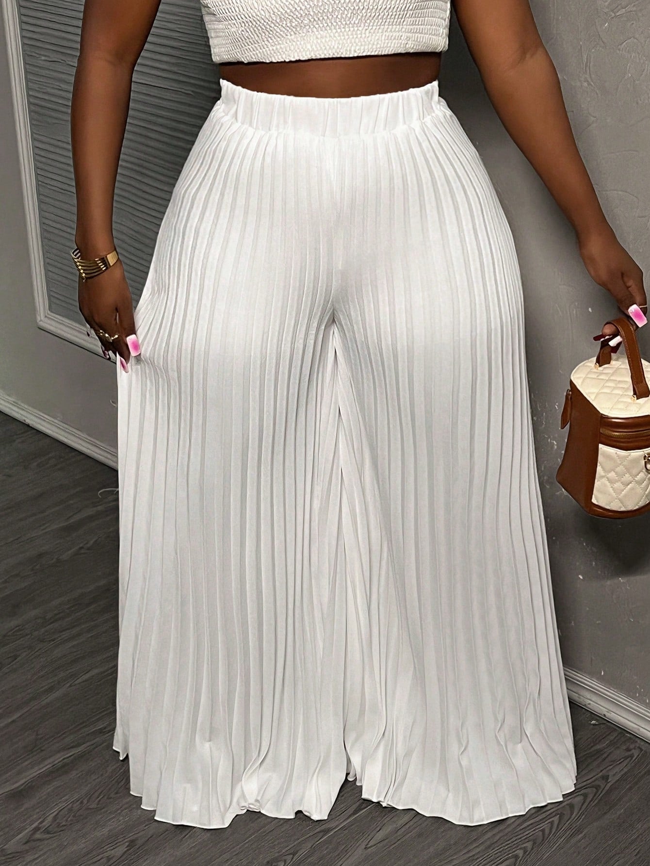 Slayr Elegant Elastic Waist Dark Green Pleated Large-Footed Extra-Long Wide-Leg Pants For Women