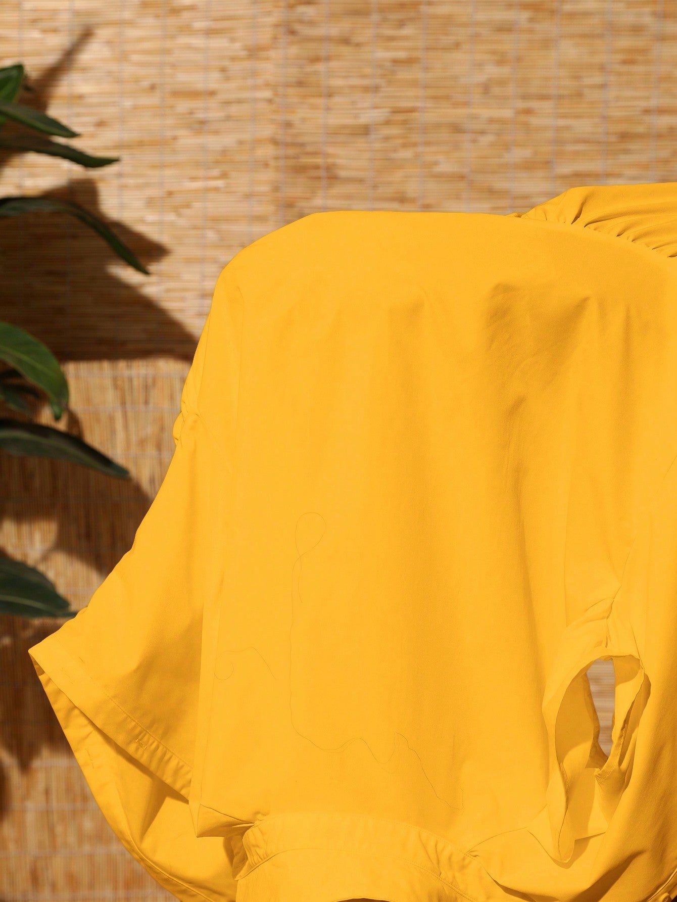 Slayr Solid Color Ruffle Trim Belted Mini Dress With Single Breasted Closure For Summer Vacation