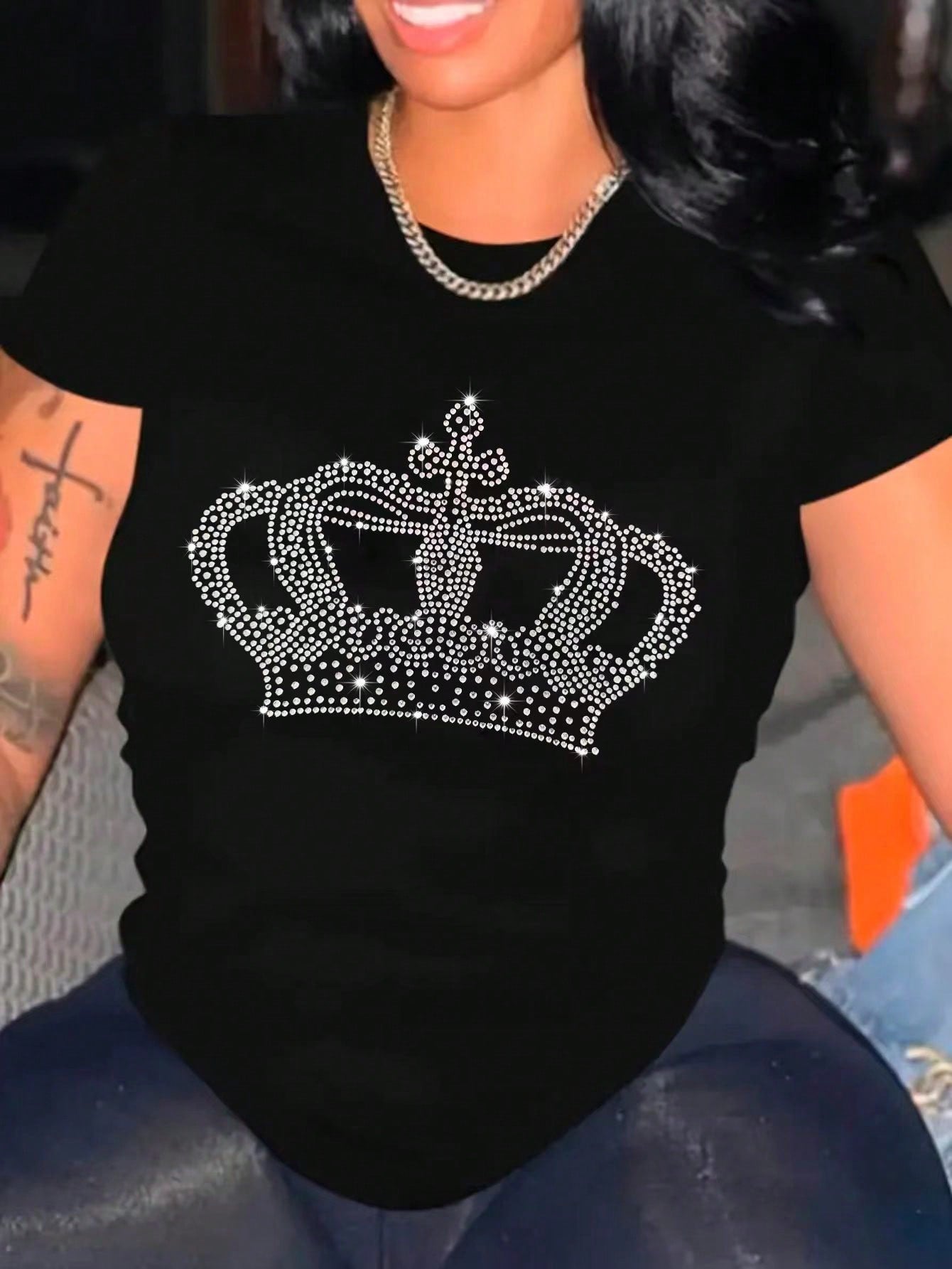 Slayr Women's Round Neck Short Sleeve Character Print Simple Casual Top, Daily Wear