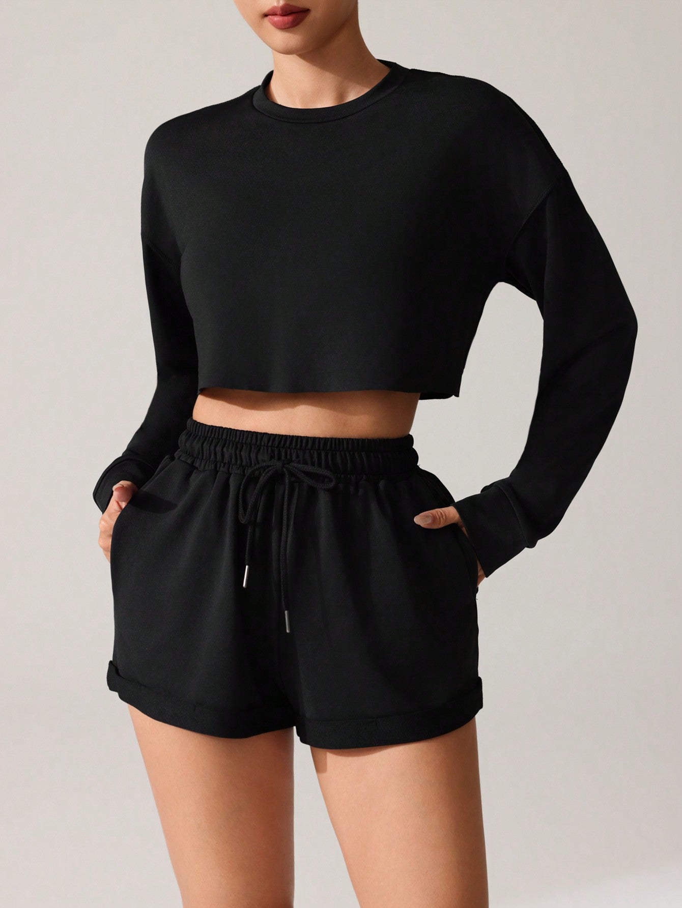 Sport Studio 2 Pieces Active Set - Hoodie And Shorts Gym Set