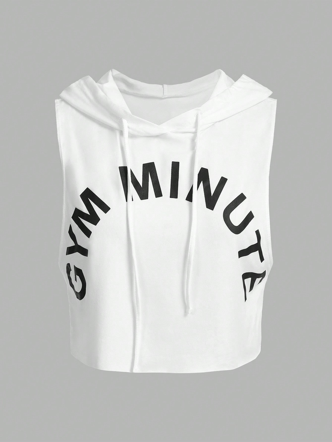 Sport Studio Women Letter Print Hooded Sports Vest And Pants Set, Fashion & Versatile