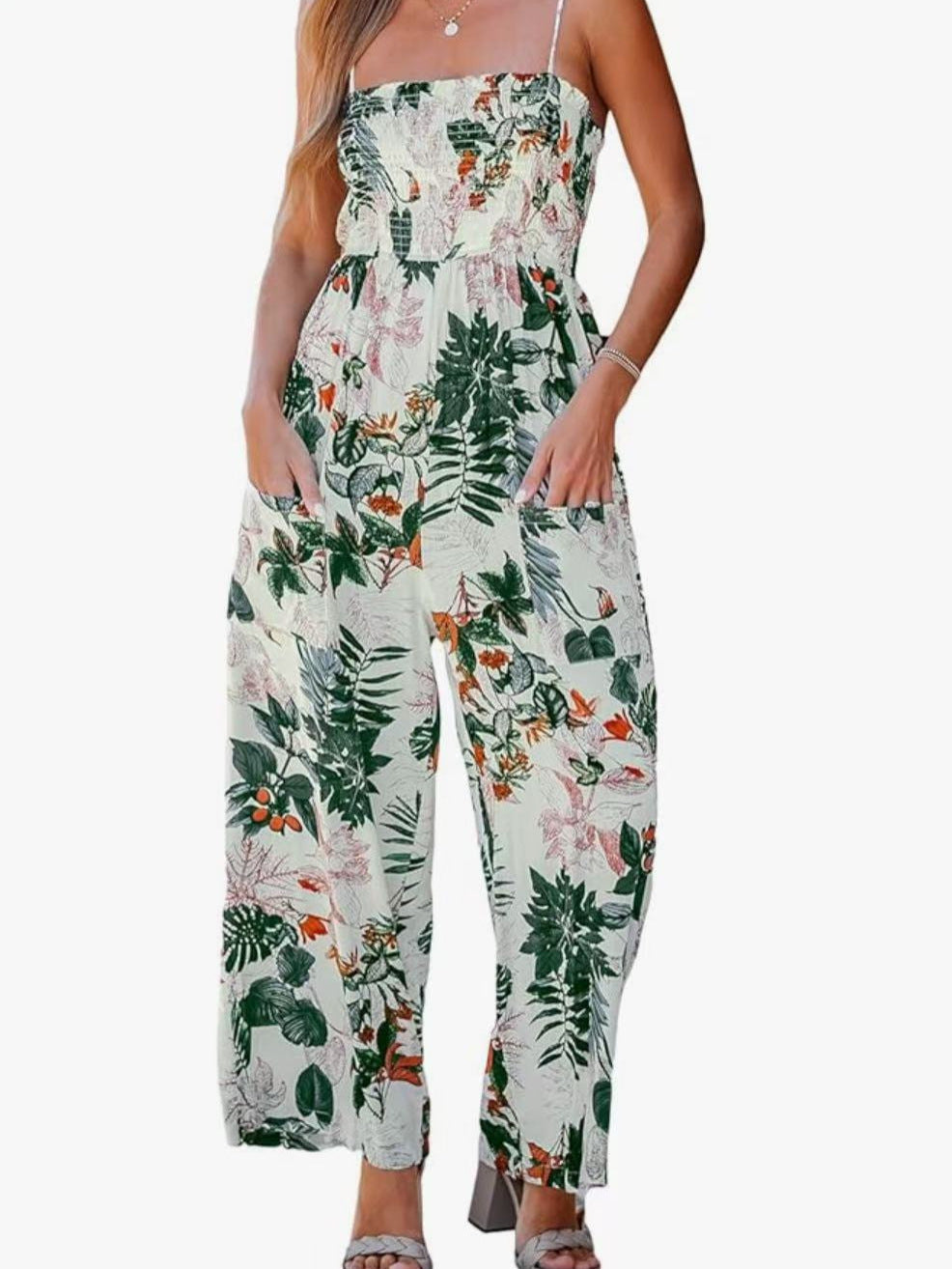 Spring-Summer Sling Loose Casual Jumpsuit Vacation Wide-Leg Romper