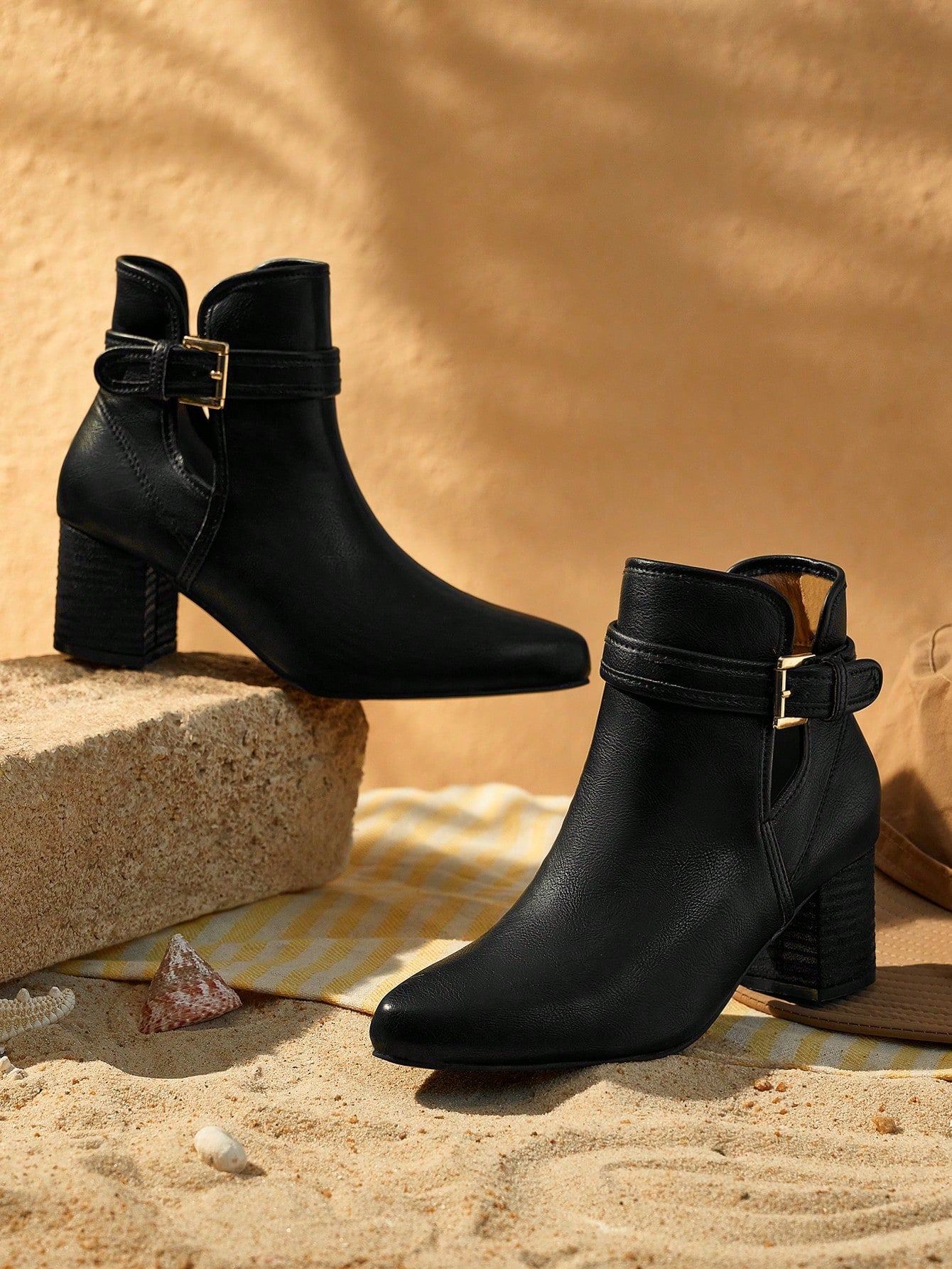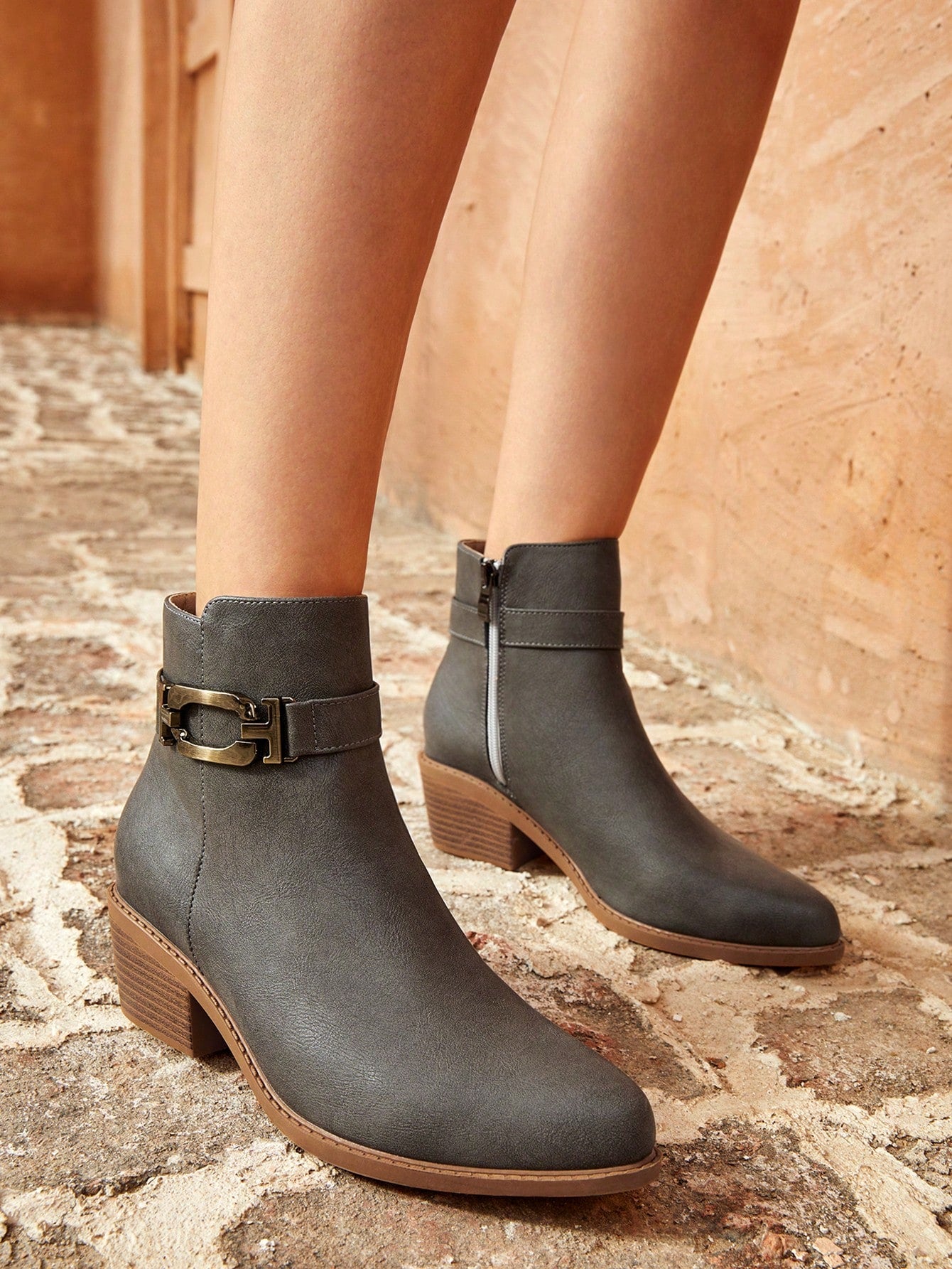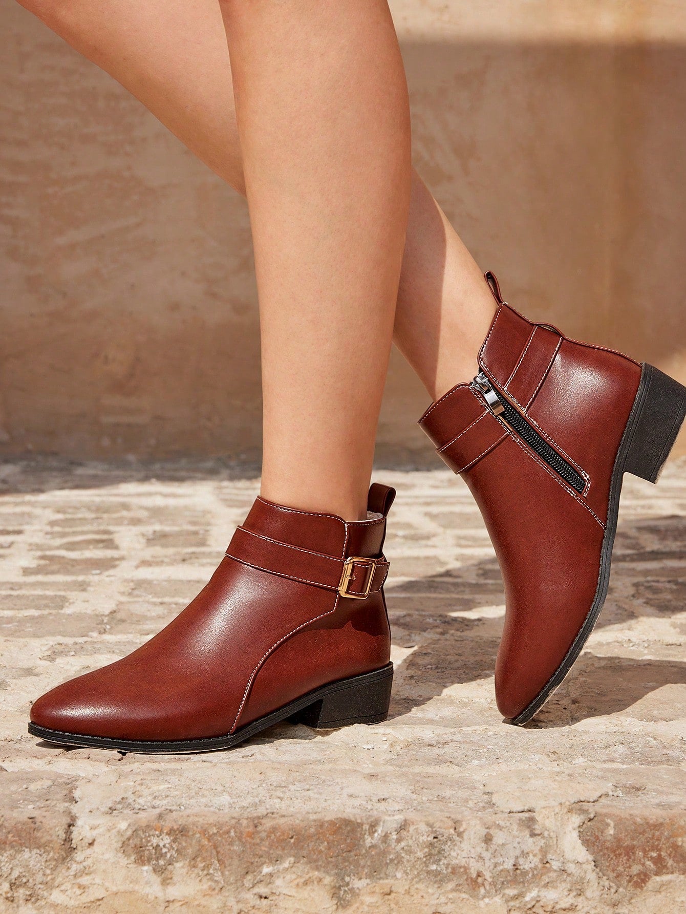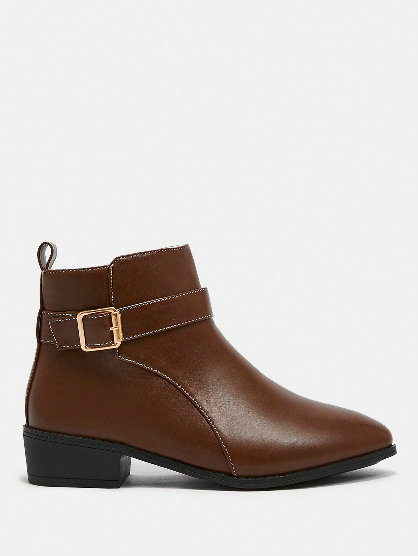 Styleloop Women's Fashionable Western Embroidered Chunky Heel Ankle Boots In Apricot, Fall Shoes For Christmas And New Year Holiday
