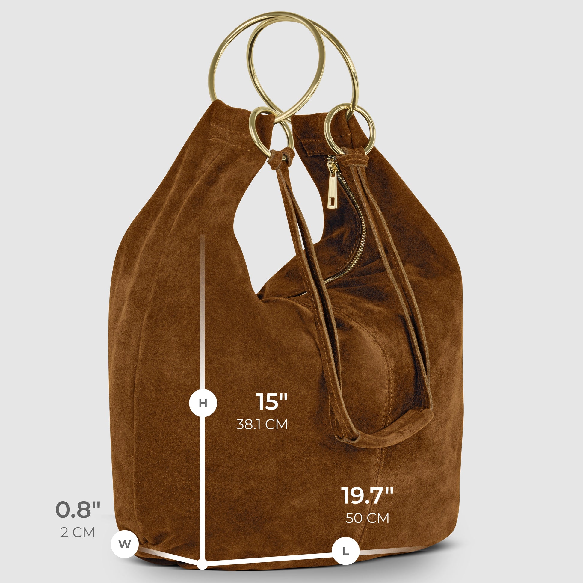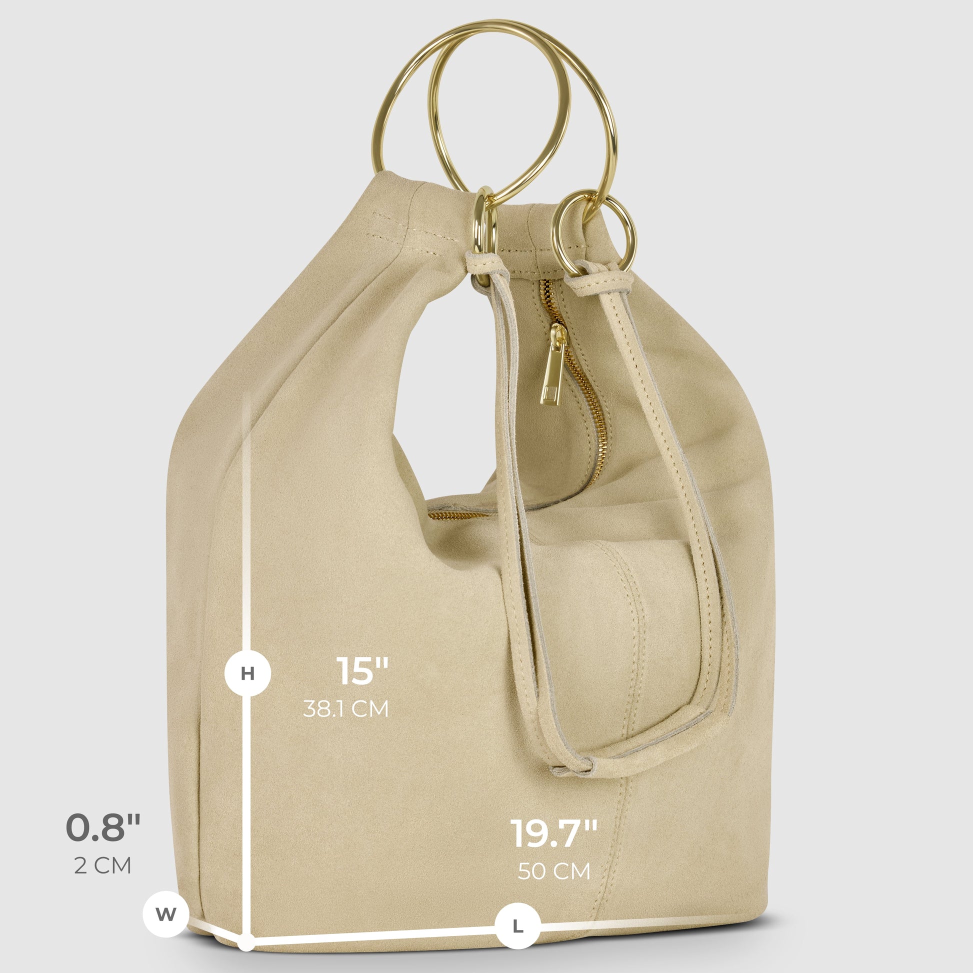 Made from natural suede, the bag has a velvety texture and matte finish that feels luxurious to the touch. The leather reflects the traditions of Florentine tanning, preserving the authentic beauty of the material.