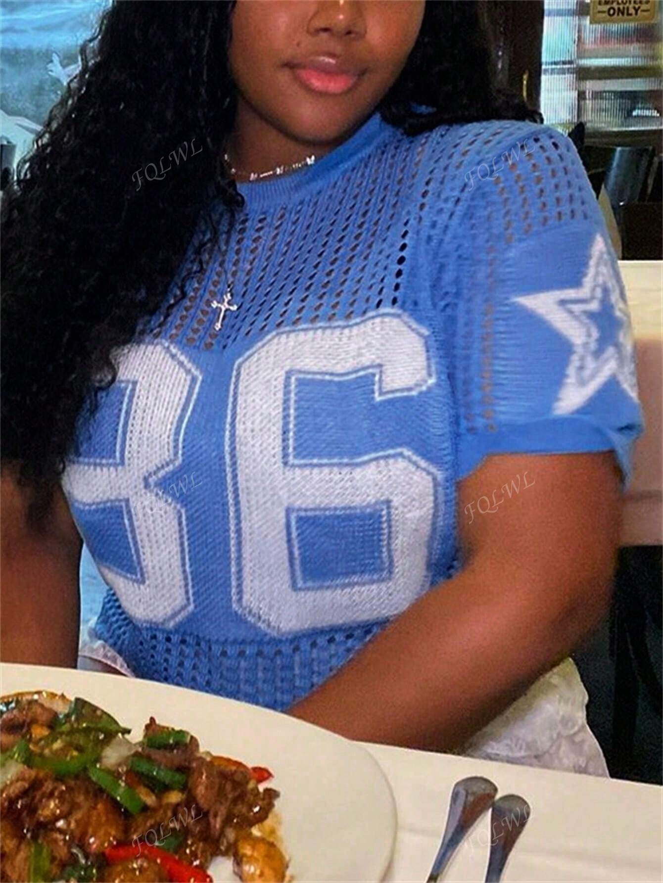 Summer Women's Casual Knitted Tops Street Mesh Breathable Round Neck Short-Sleeved Casual Knitted T-Shirt