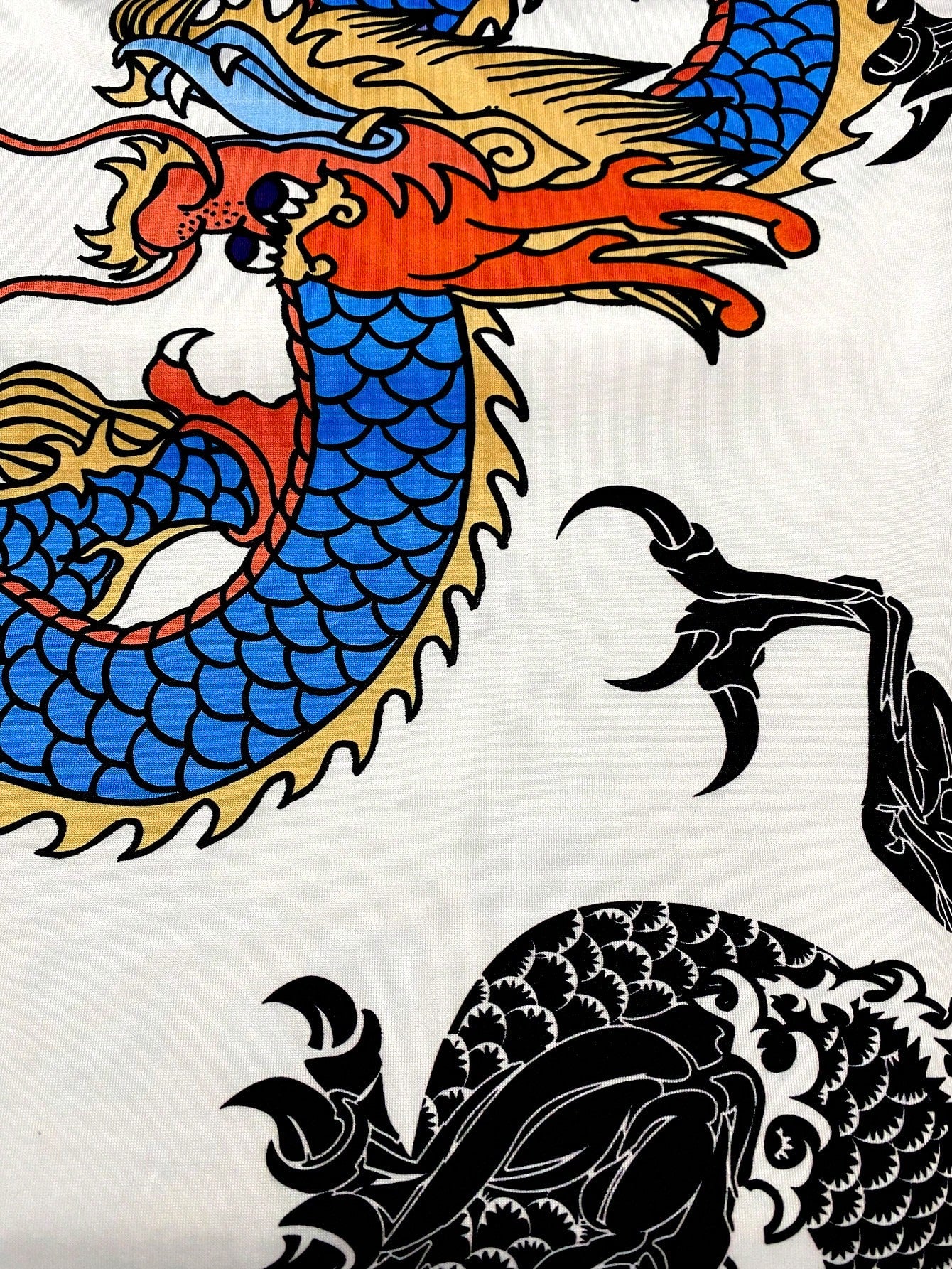 Unity Chinese Dragon Print Random Cut Women Summer Stand Collar Short Sleeve Elegant Dress