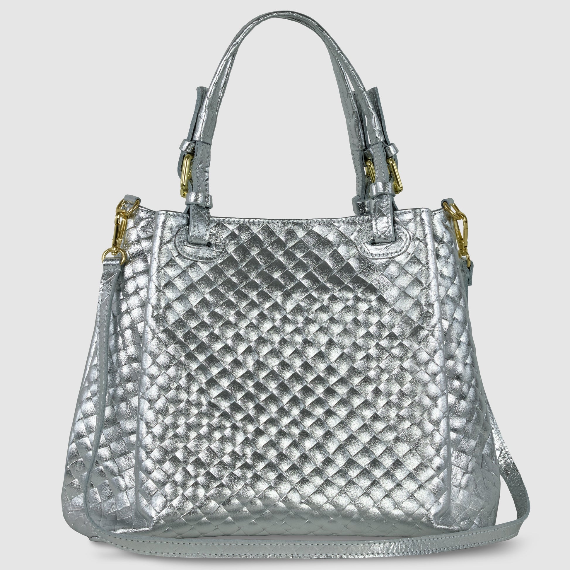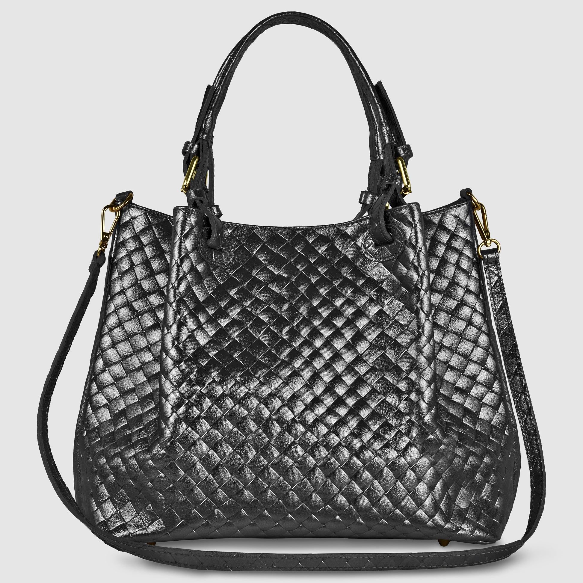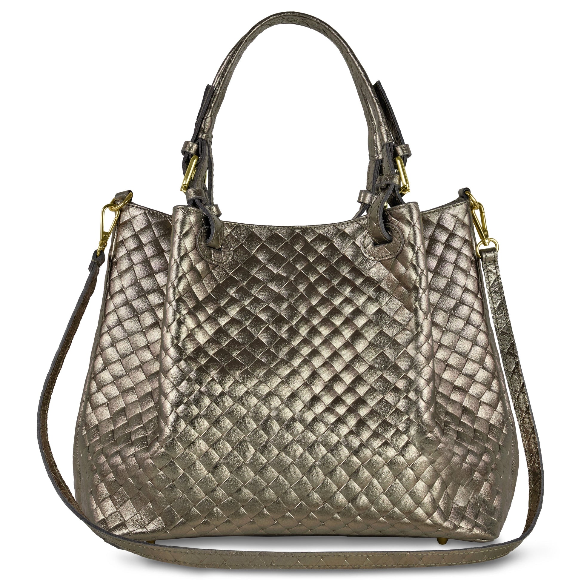 Weave Metallic Suede Leather Top-Handle Bag