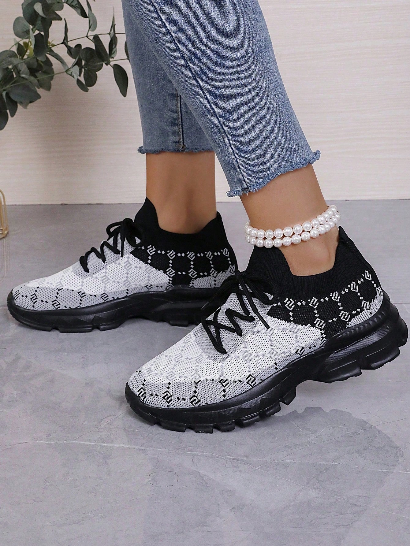 Women Colorblock Lace Up Casual Outdoor Sports Shoes