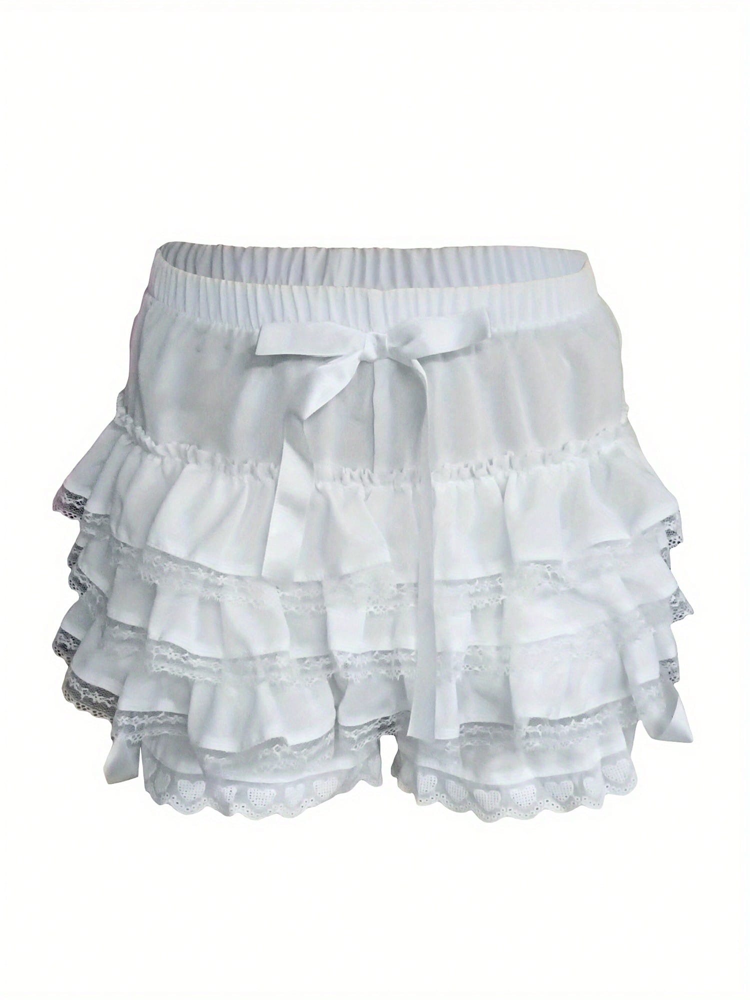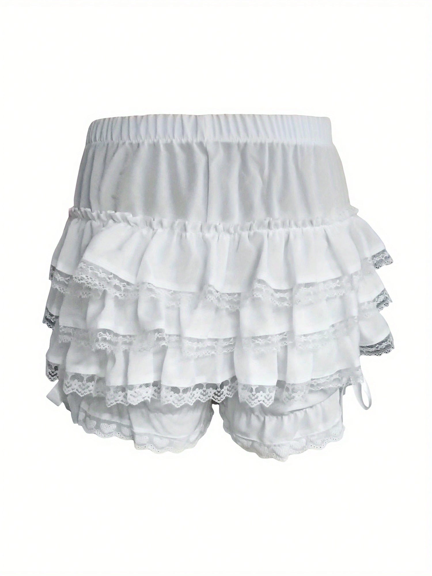 Women Y2k Lolita Bloomers Teens Cute Tiered Ruffle Pumpkin Panties Bloomer Bottom Lace Trim Layered High Waist Shorts Pettipants