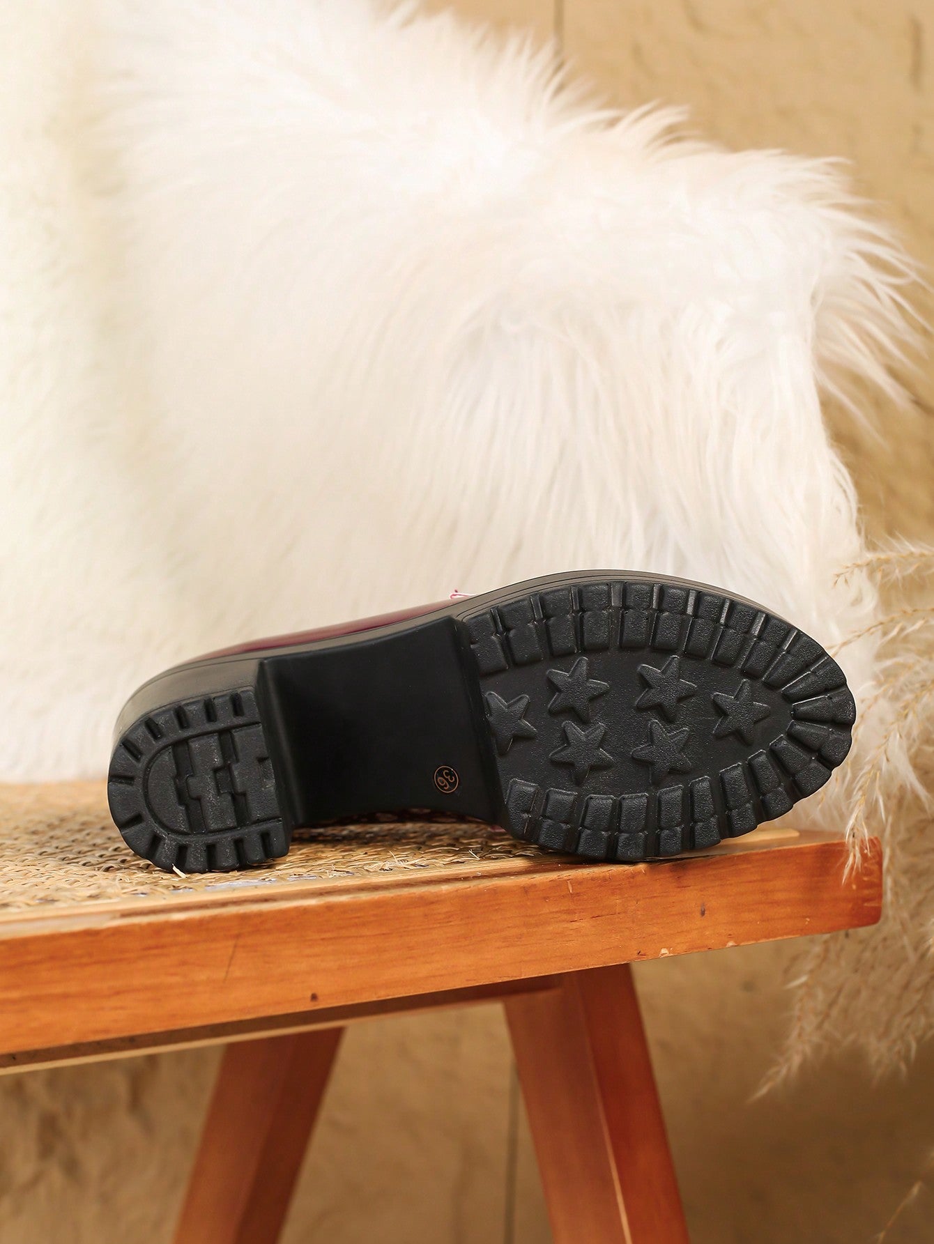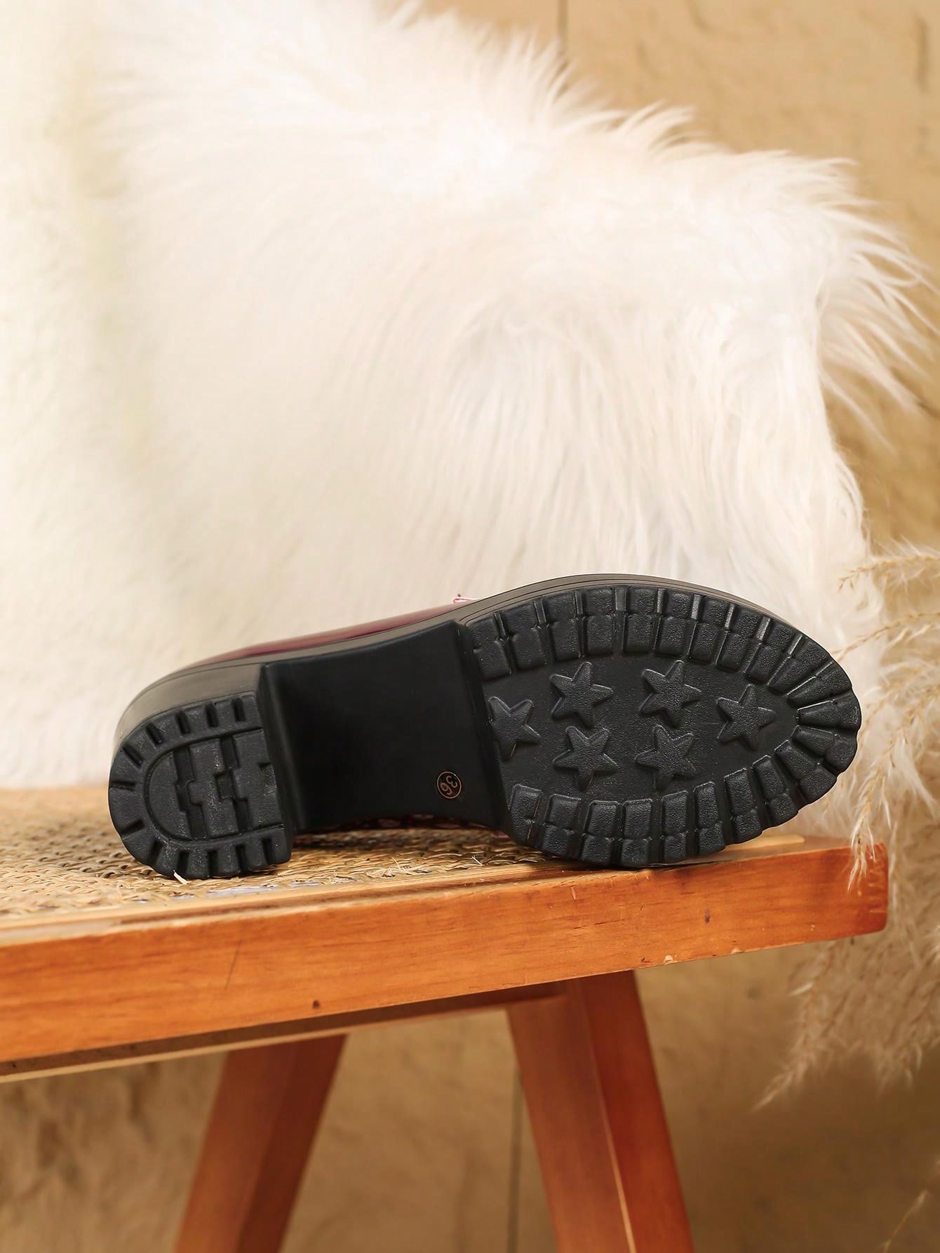 Women's Bow Decor Chunky Heeled Slip-On Loafers, Dressy Patent Leather Work Pumps, Mid-Heel Square Toe Oxfords