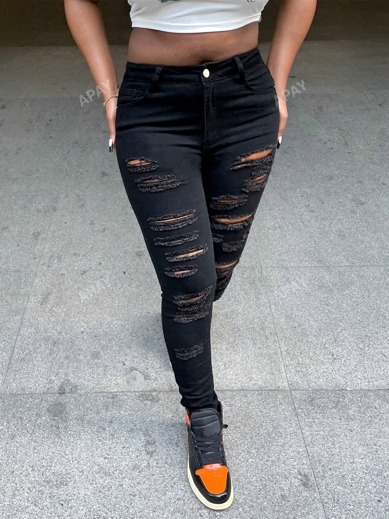 Women's Casual Cut-Out Slim Fit Stretch Skinny Pants With Pockets