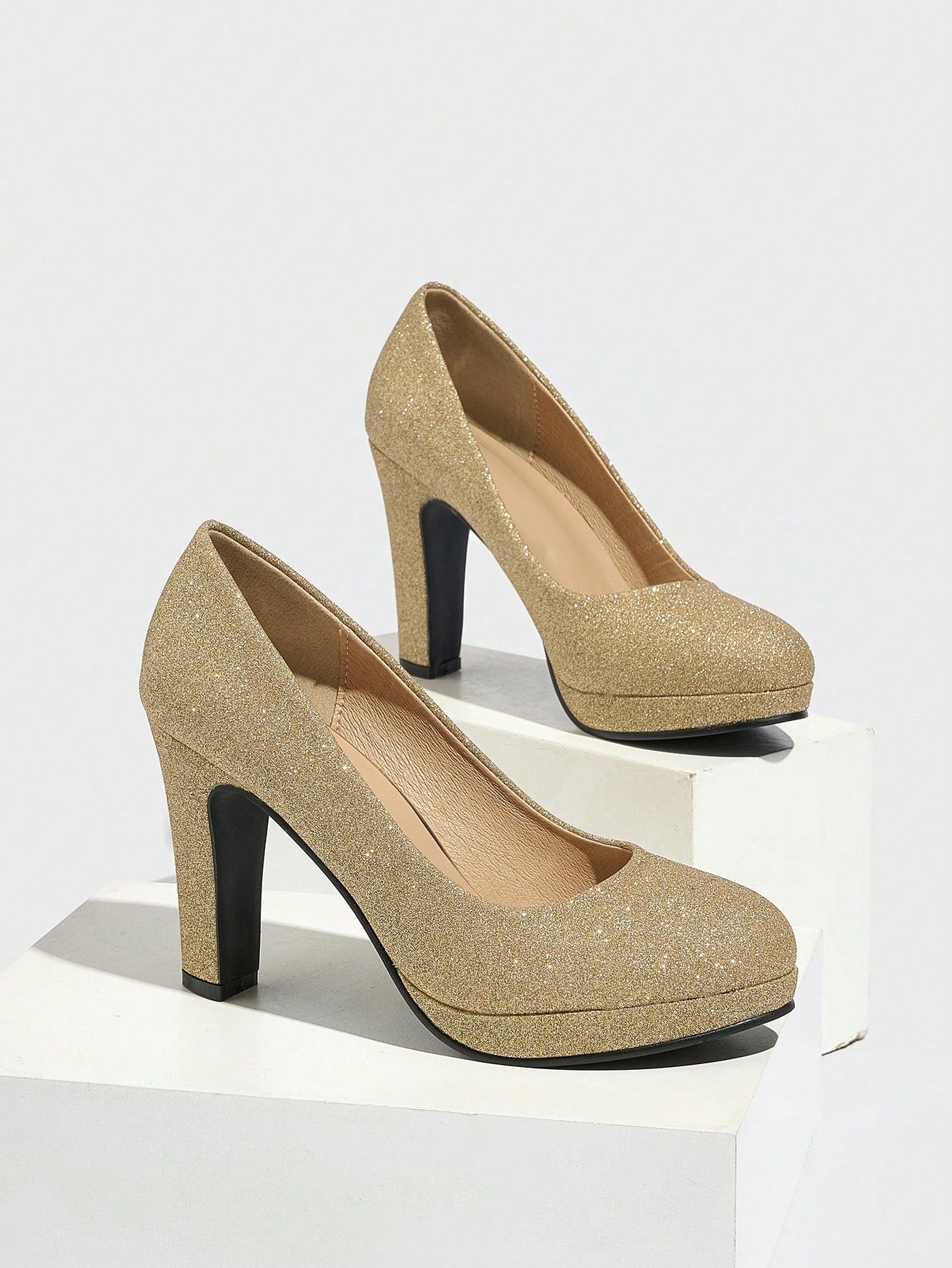 Women's Crystal Strap Round Toe Thick Bottom Waterproof Platform Chunky High Heel Shoes, Elegant Glamorous High-Class Comfortable Versatile Holiday/Christmas Party Pumps