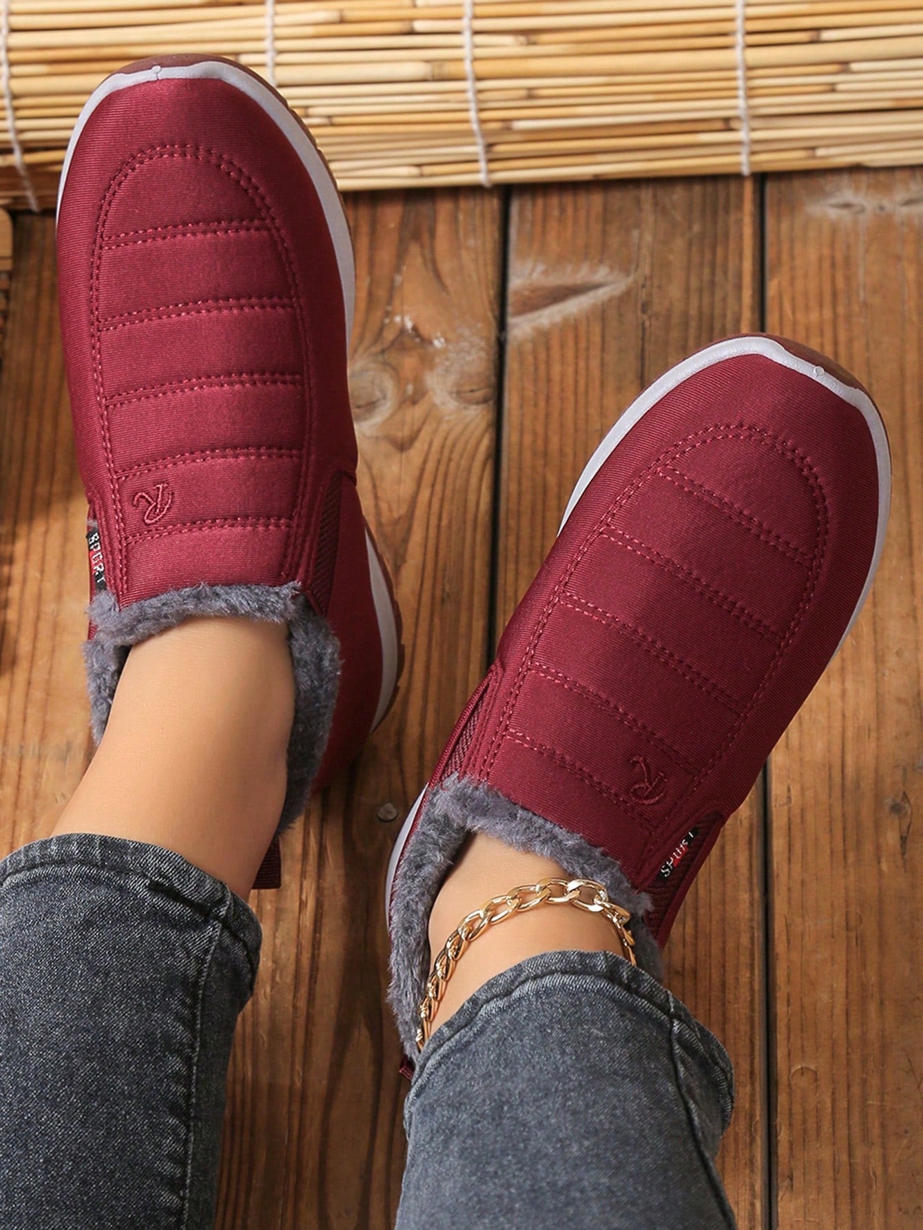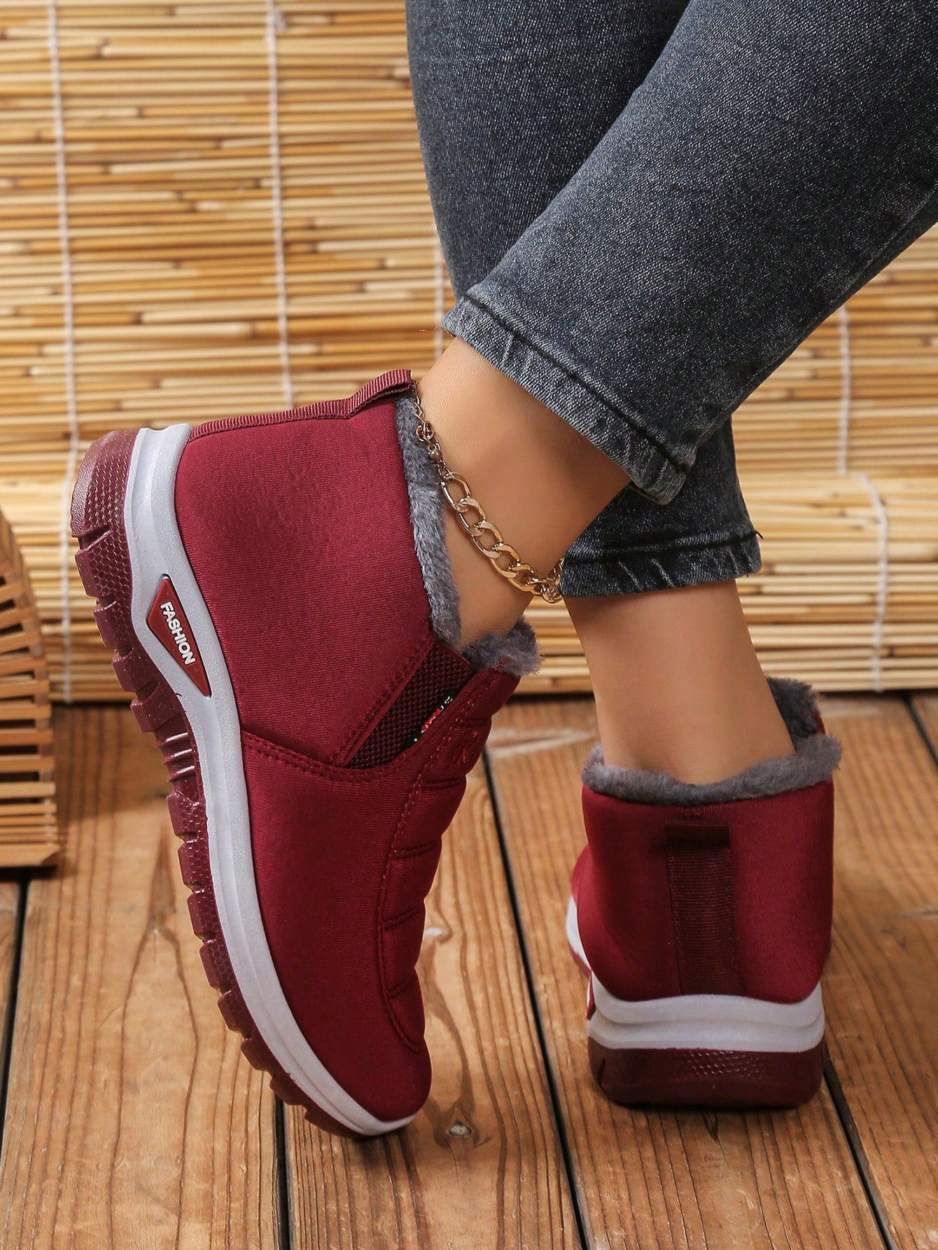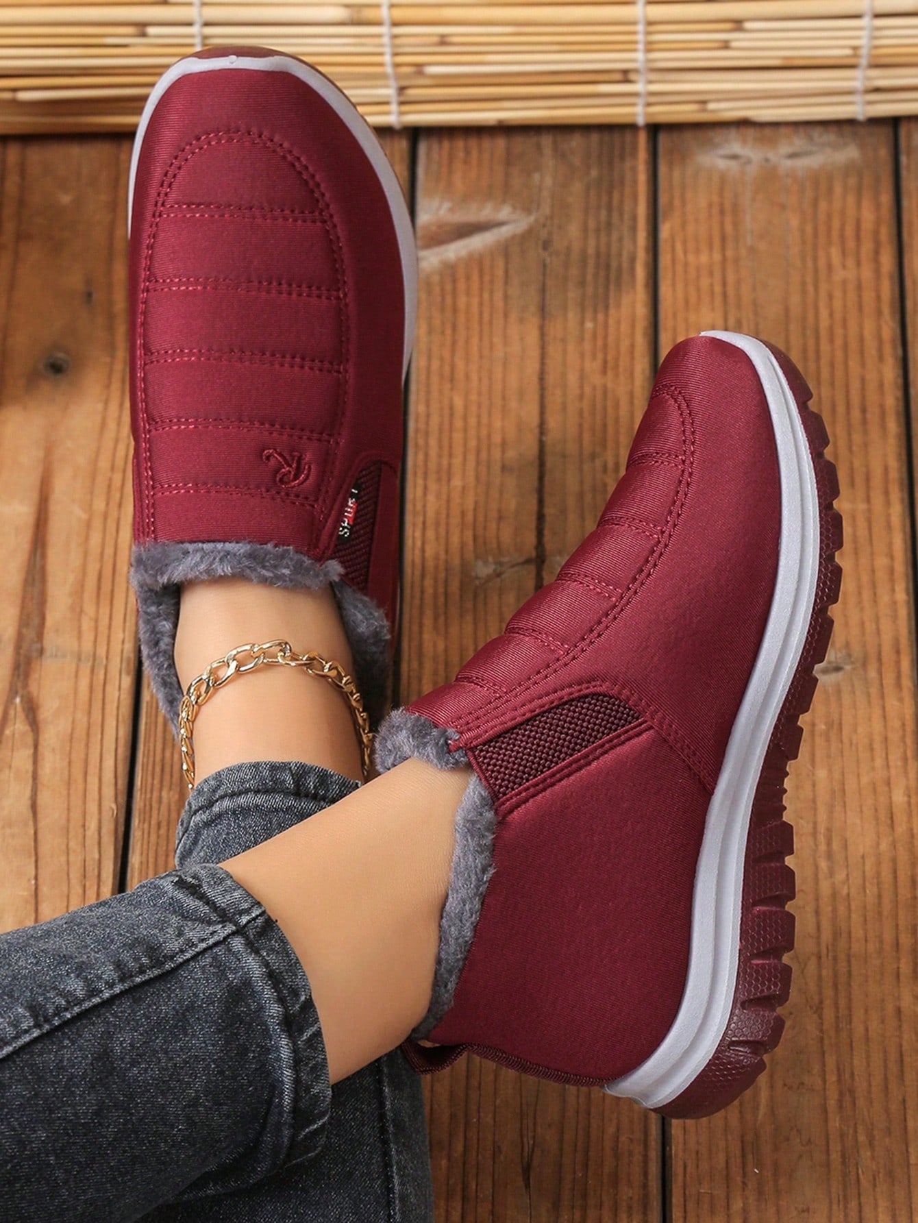 Women's Fashion Soft Bottom Slip-On Snow Boots, Warm & Thick Thermal Lined Ankle Snow Boots, Winter Sports Shoes, Black