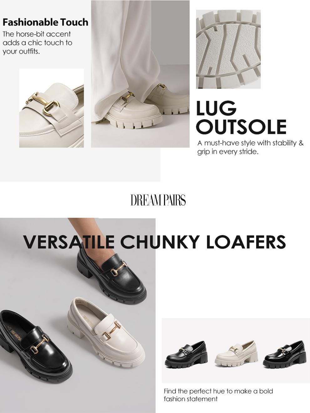 Women's Loafers Platform Chunky Loafers & Slip On Casual Leather Shoes
