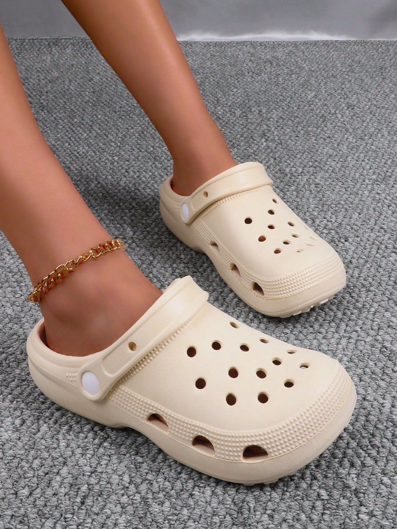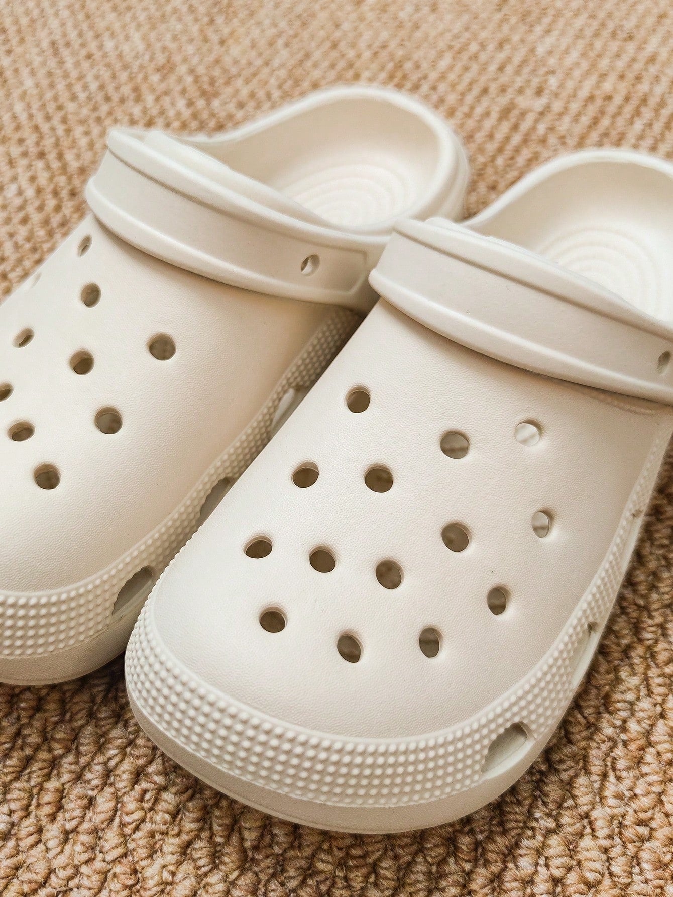 Women's Outdoor Commuting Trendy Minimalist Style Comfortable EVA Breathable Slip-Proof & Waterproof Hollow Out Shoes, Beige