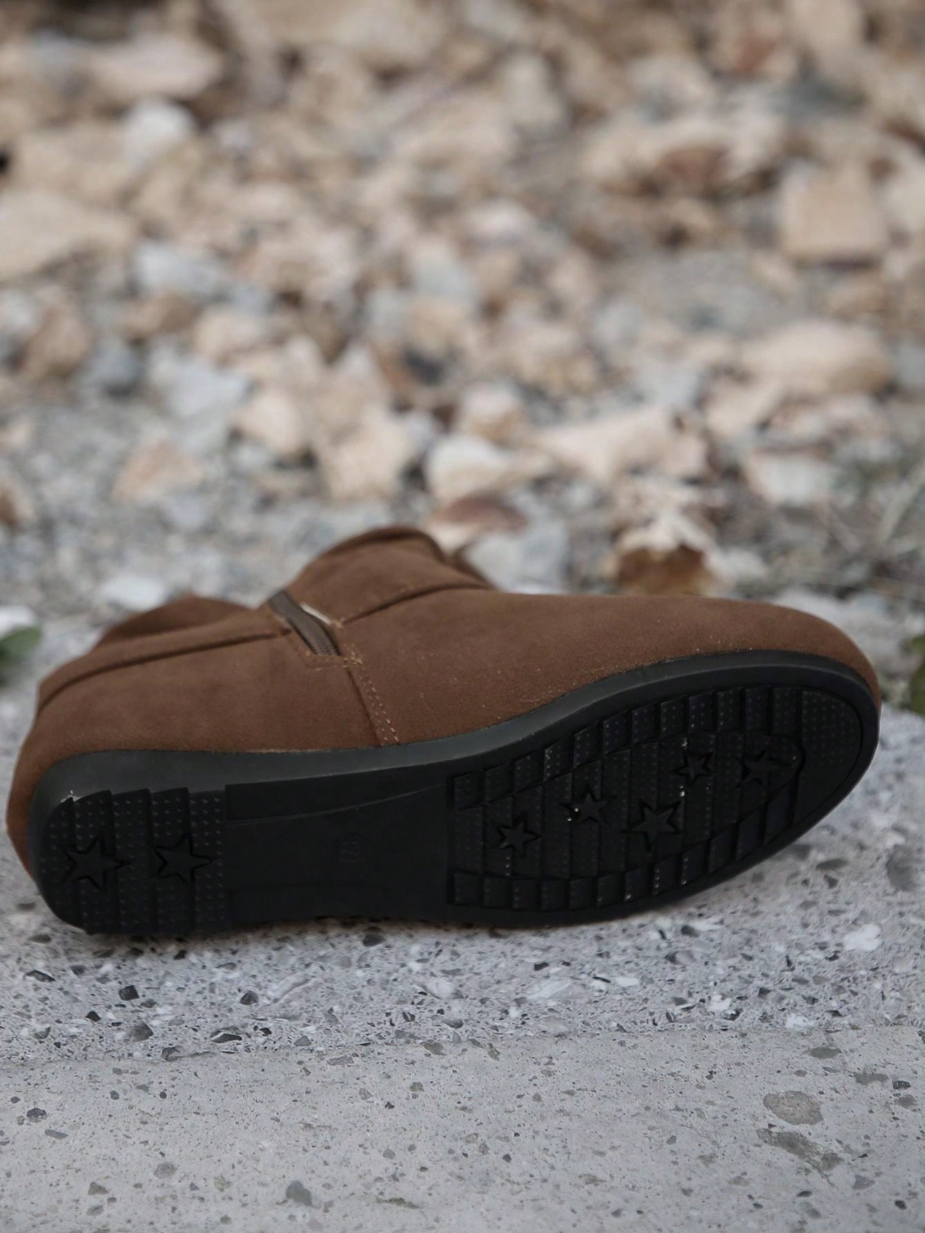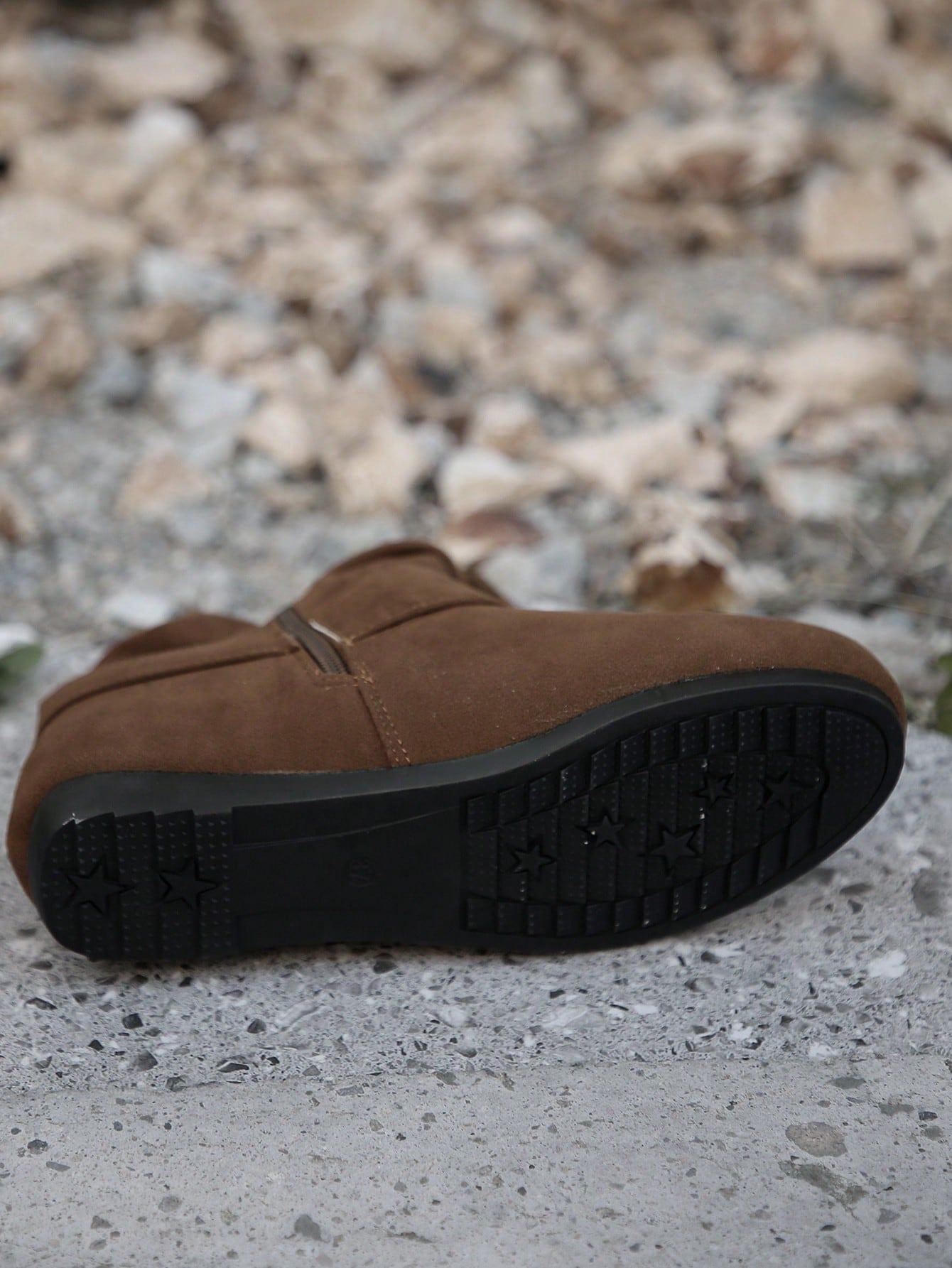 Women's Side Zipper Pleated Stacked Boots, Strap With Metal Buckle Round Toe Flat Versatile Fashion Boots