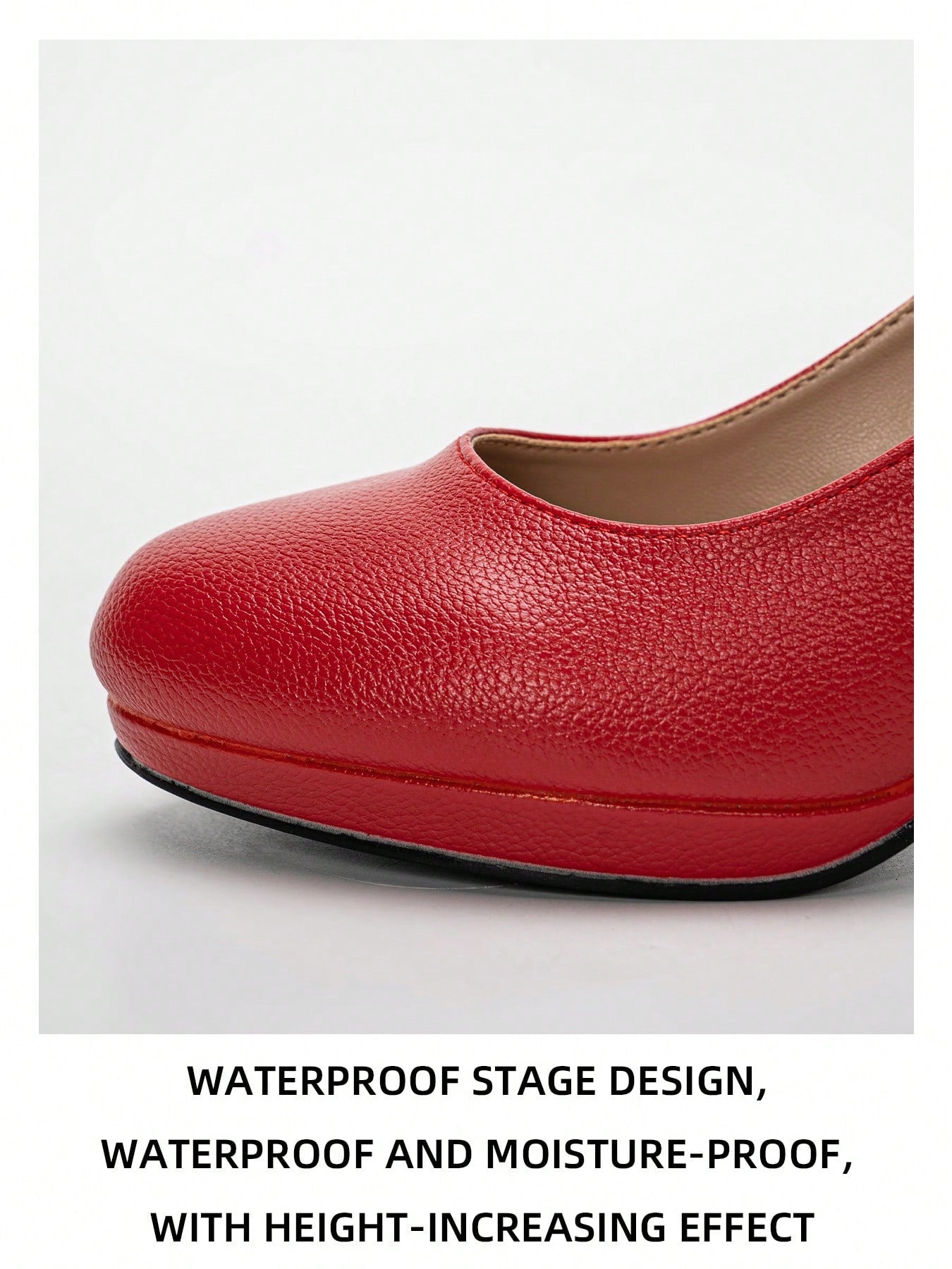 Women's Solid Color Thick-Soled One-Strap High Heel Shoes, Elegant Party Formal Wedding High Heels, Comfortable Platform Shoes, Fashion Versatile Office Christmas Pumps, Multi-Function Waterproof Anti-Slip Ankle Strap High Heels