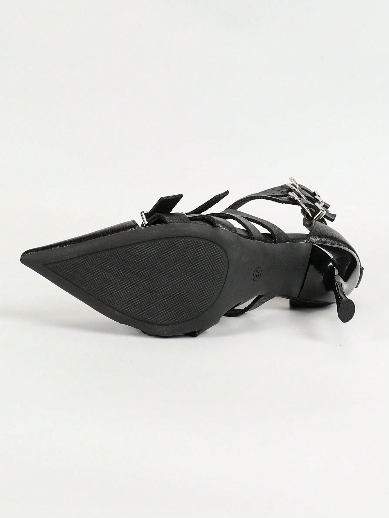 Women's Summer Pointed Toe High Heel Gladiator Boots With Hollow Metal Buckle, Elegant New Fashion Boots